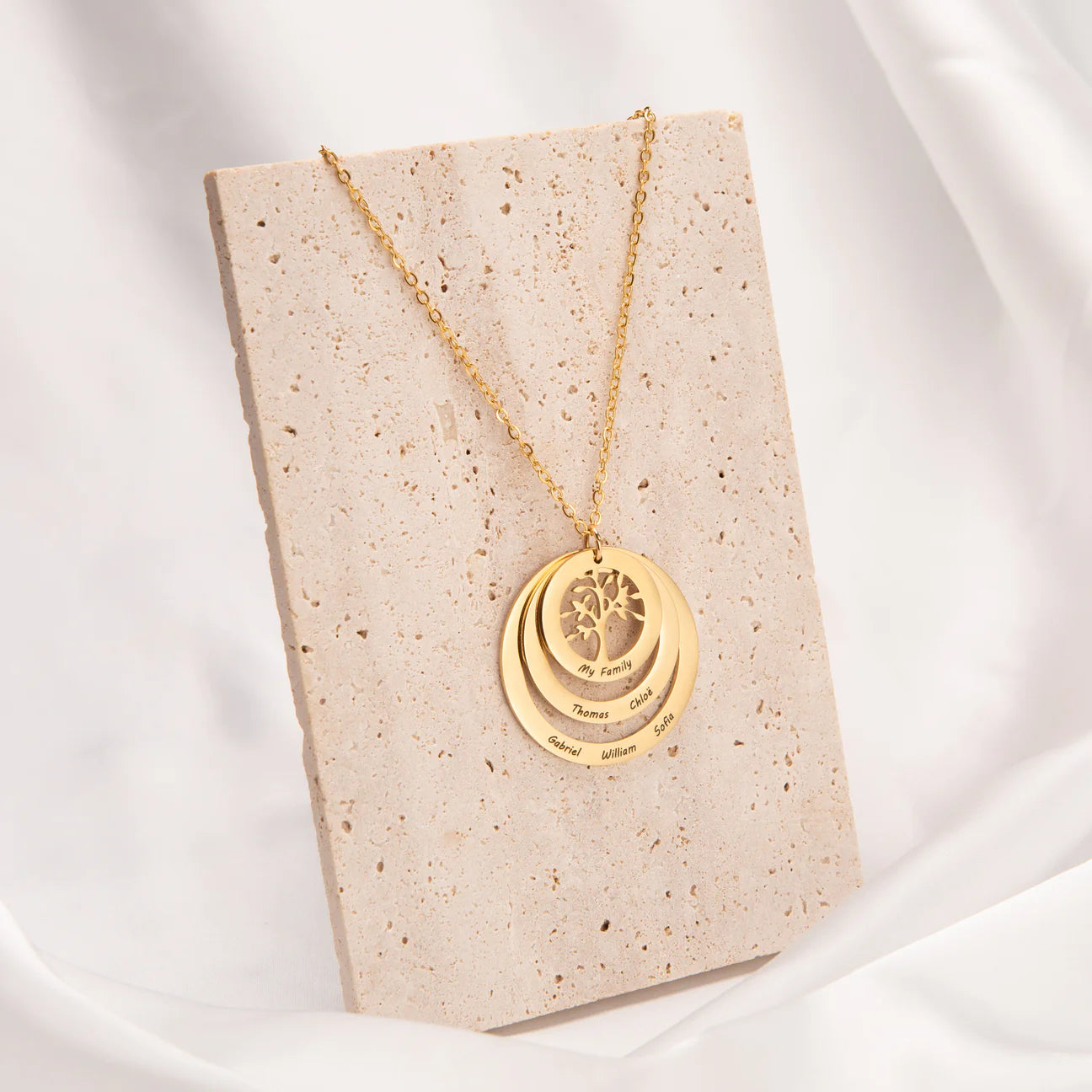 Celebrate the unbreakable bond of family with this elegant customized family tree necklace—a timeless keepsake to treasure forever.