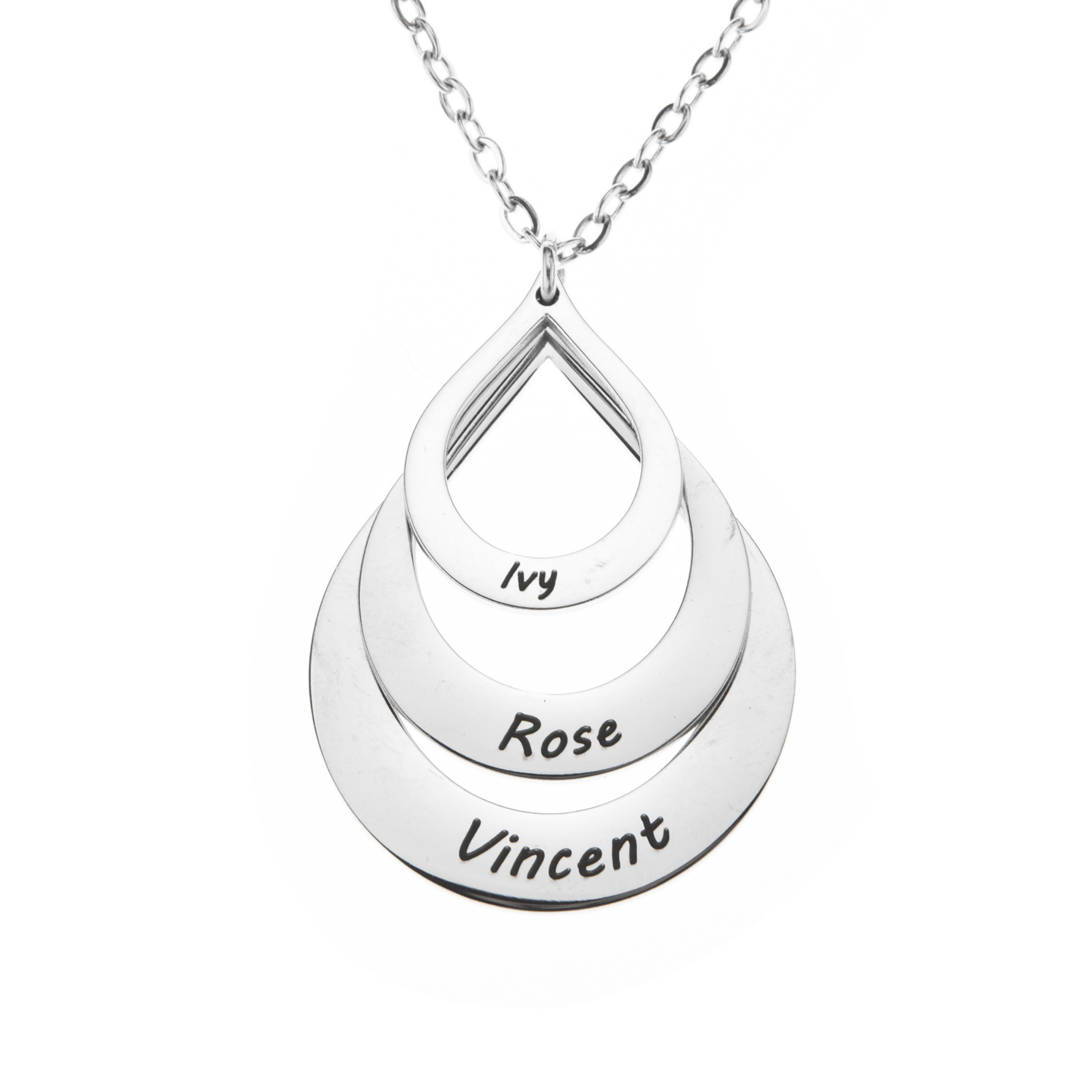 The most valuable thing in the world is family and love. Show your love to your family by wearing this handcrafted Engraved Drop Shaped Family Necklace, this is a perfect gift as well for a Birthday, Christmas, Anniversary, or any special occasion.