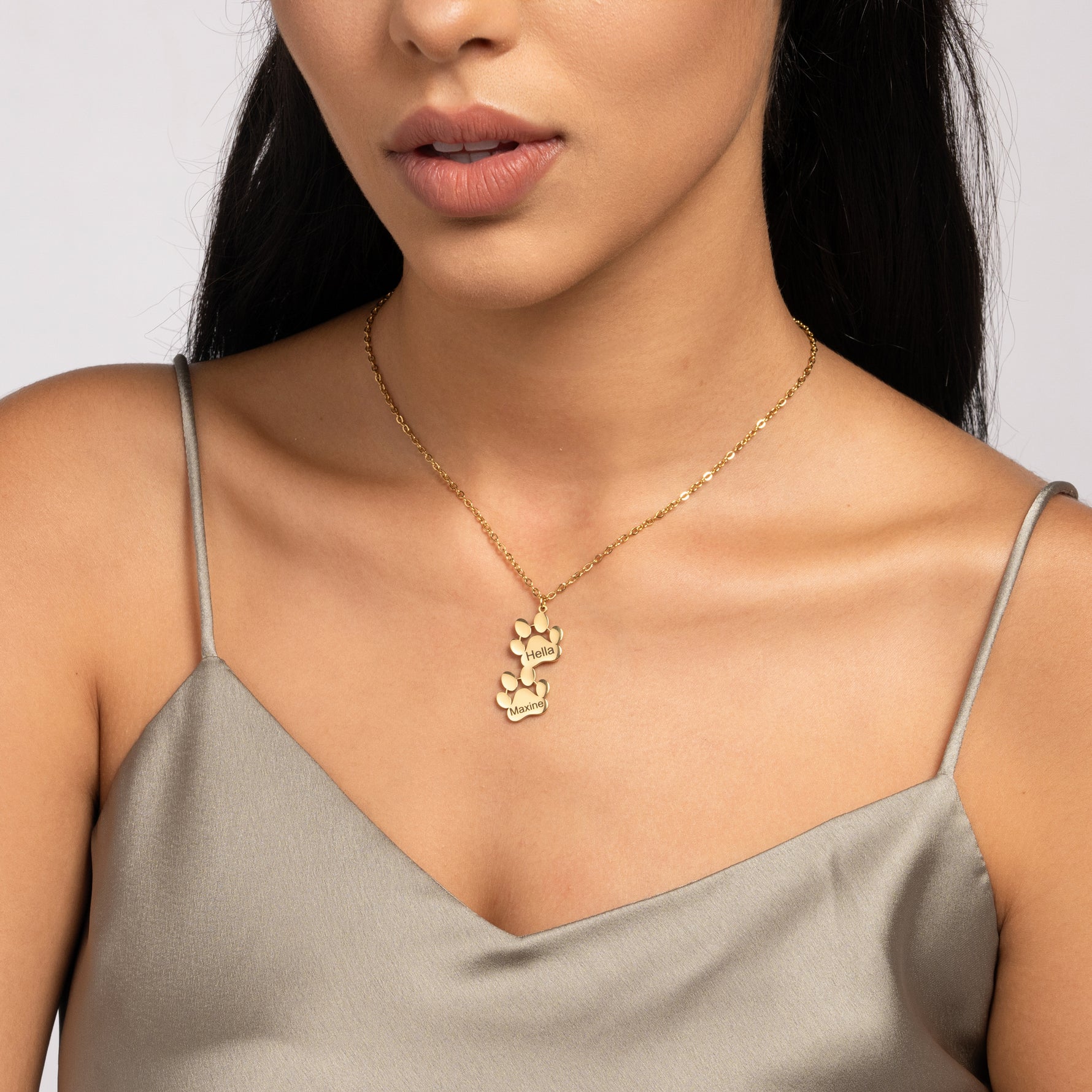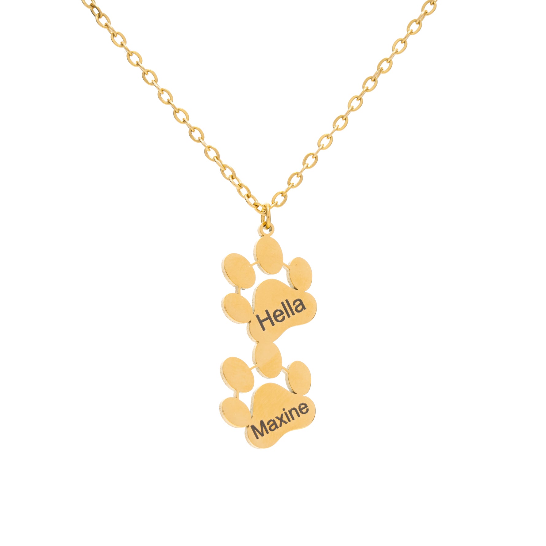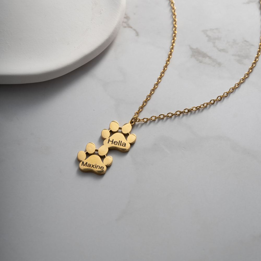 Each pendant is made up of multiple paw prints, forming a chain of connection and love. Each paw can be personalized with a different name, allowing you to keep your loved ones—both human and animal—close to your heart. It's a symbol of the loyalty and unconditional affection we share with our pets and loved ones. This necklace is not just a piece of jewelry, but a heartfelt expression of companionship and love, making it a perfect gift for any pet owner or animal lover.