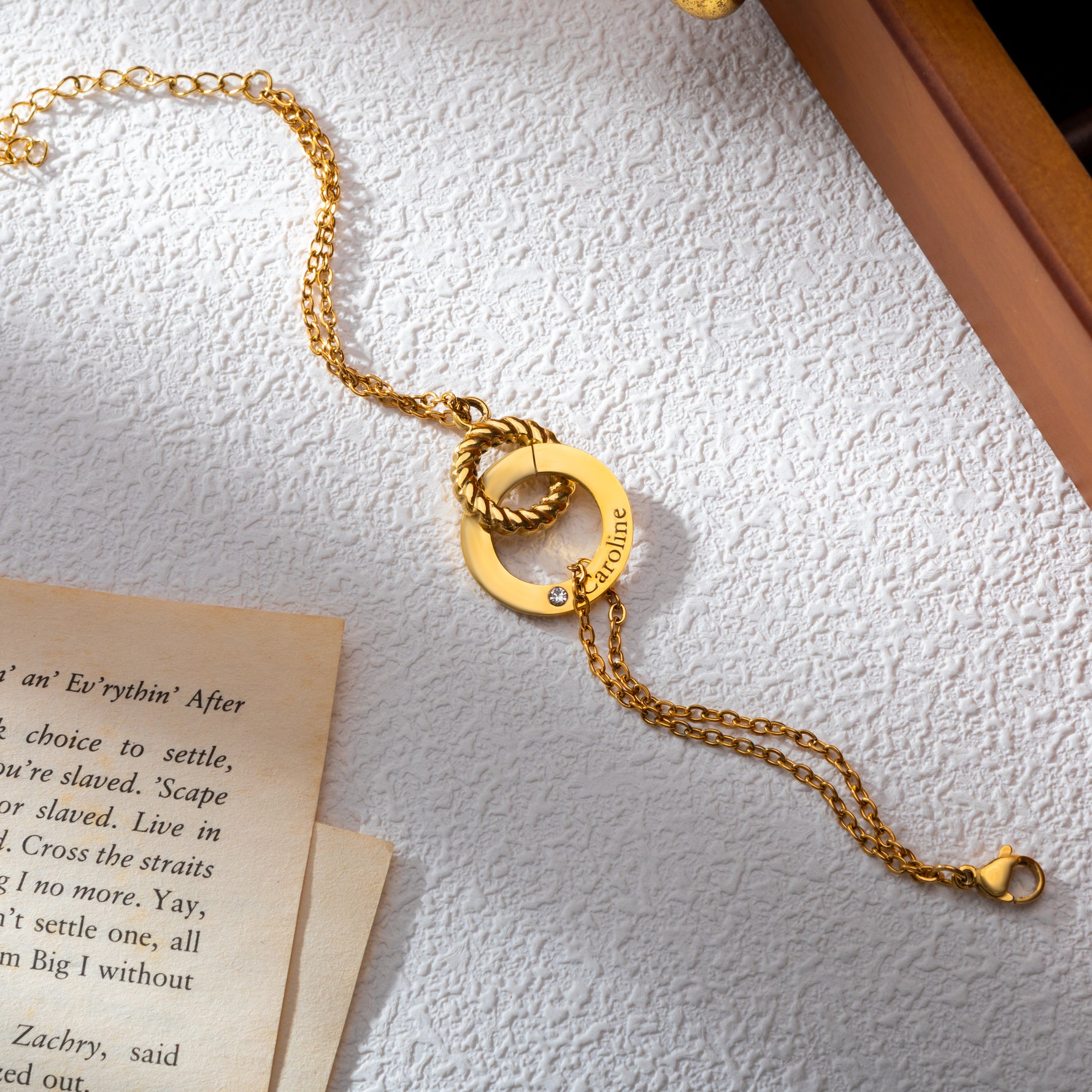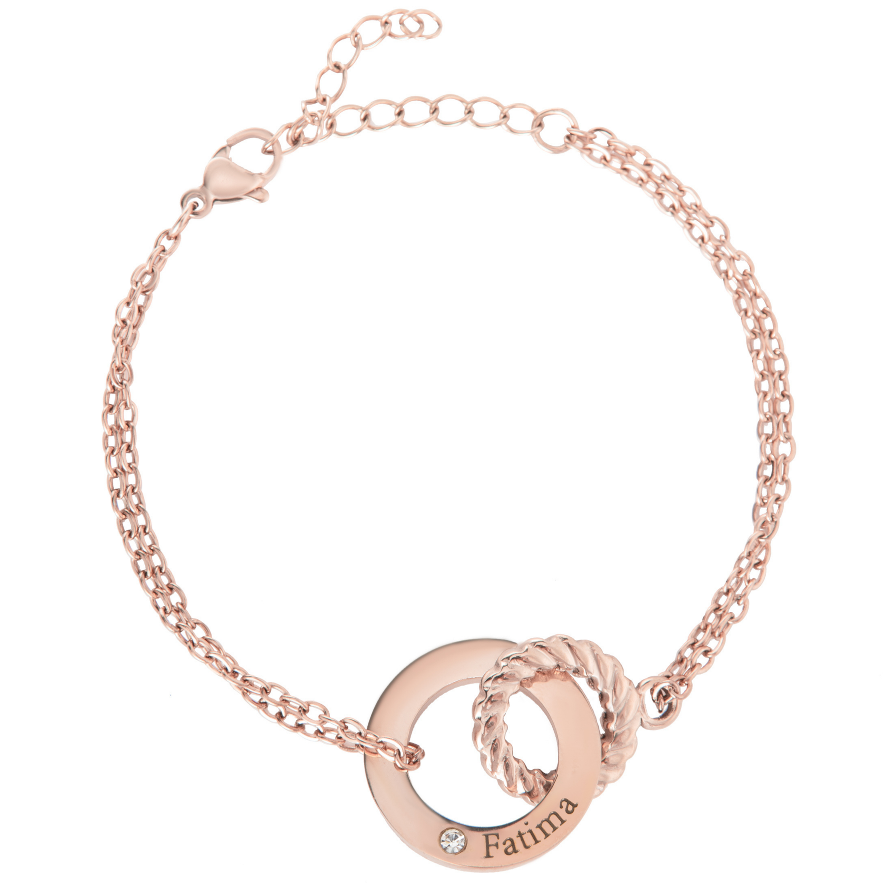 Engraved Circle Bracelet with Twisted Ring & Clear Crystal