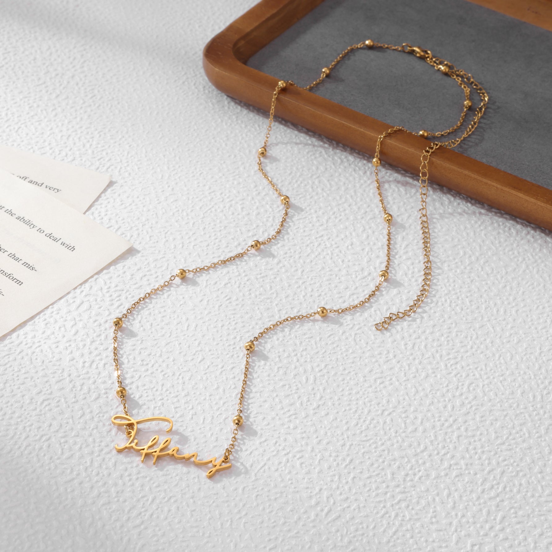 At My Little Necklace, you can personalize your jewelry using many languages and alphabets, including Arabic, Russian, and other non-Latin scripts. We also support special characters and symbols such as @, $, &, *, ♡, and more.