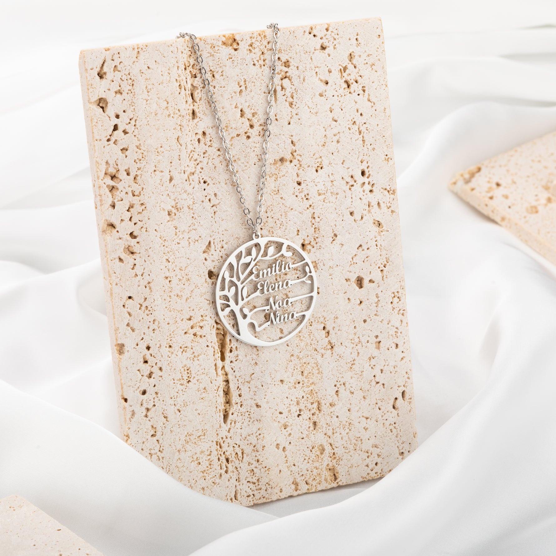 Honor your loved ones with our Tree of Life Family Name Necklace, a beautiful pendant that symbolises love, unity, and the strength of family. Customizable with up to four engraved names, it’s a meaningful keepsake designed to keep those dearest to you always close.