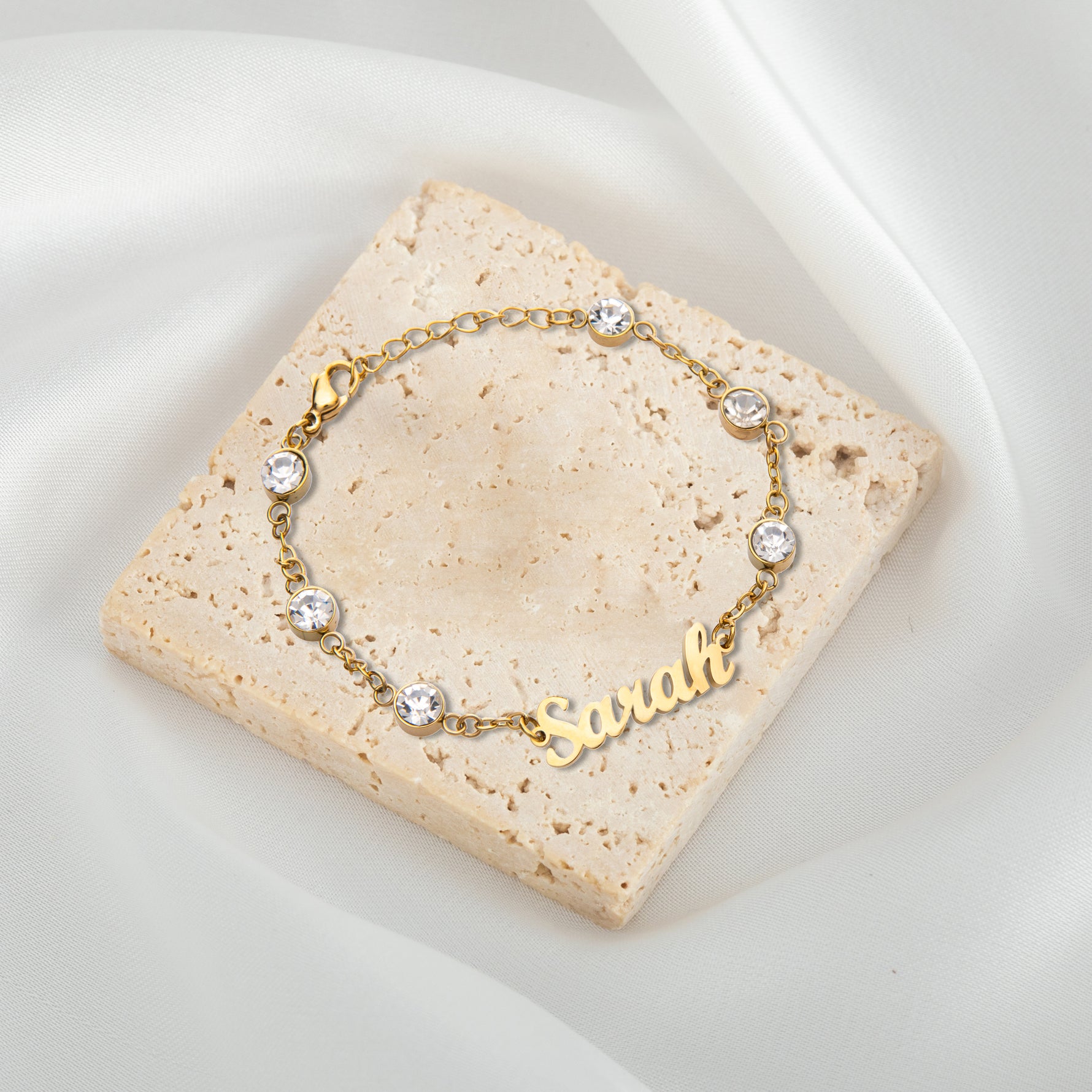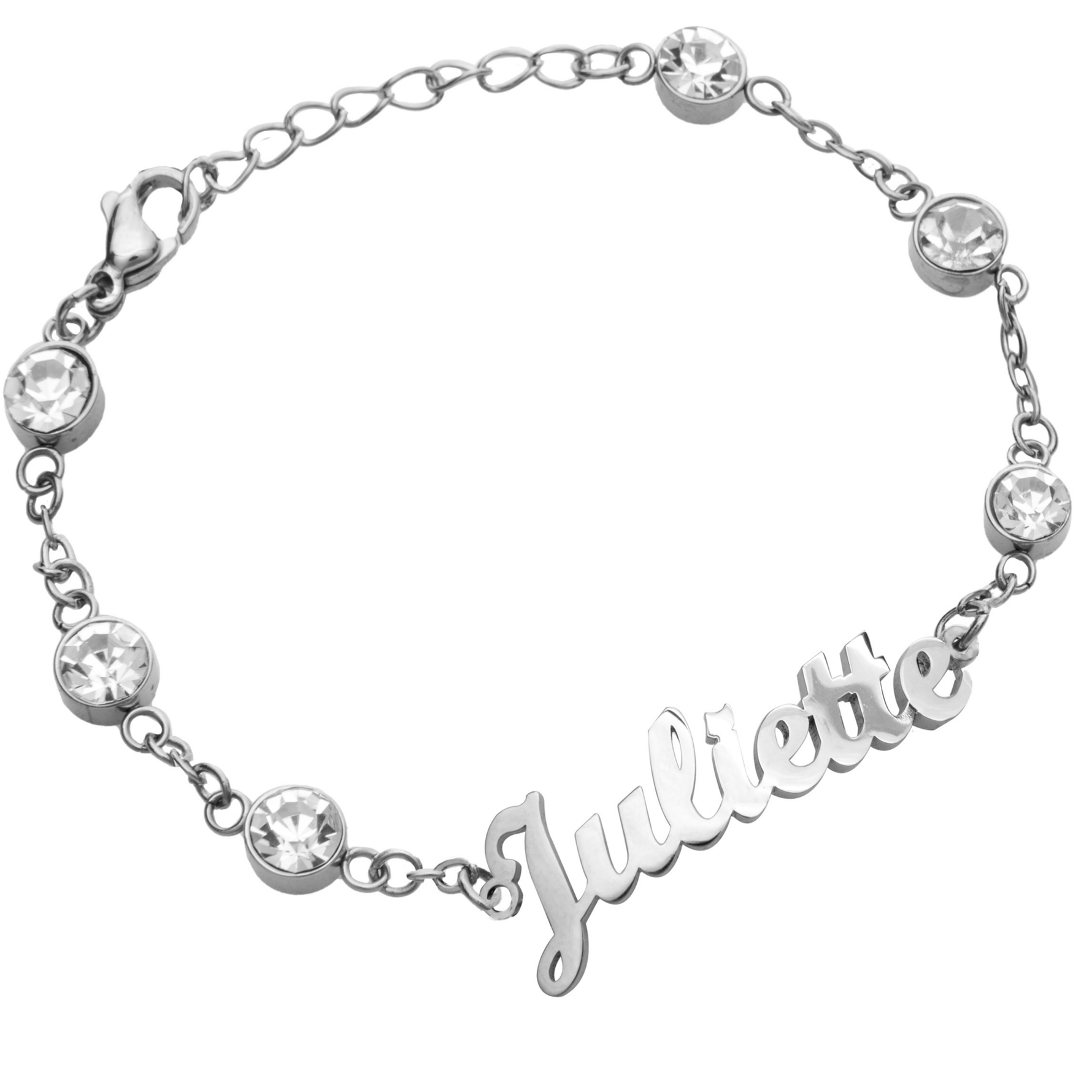 Looking for a little something different? Then our Name Bracelet with crystal stone will be a perfect fit! This piece is for sure going to please either you or the person you give it to!