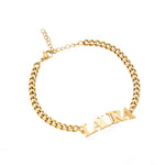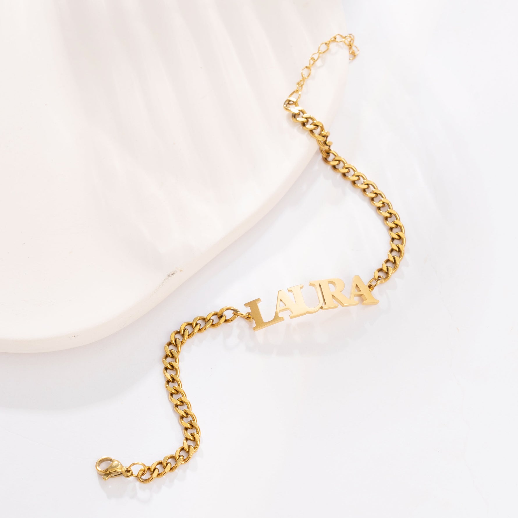 Discover our Uppercase Name Bracelet, an elegant and bold piece made from high-quality stainless steel, available in Gold, Silver, and Rose Gold finishes. Personalize it with a name in uppercase letters, making it a unique and sophisticated accessory that showcases your individuality.