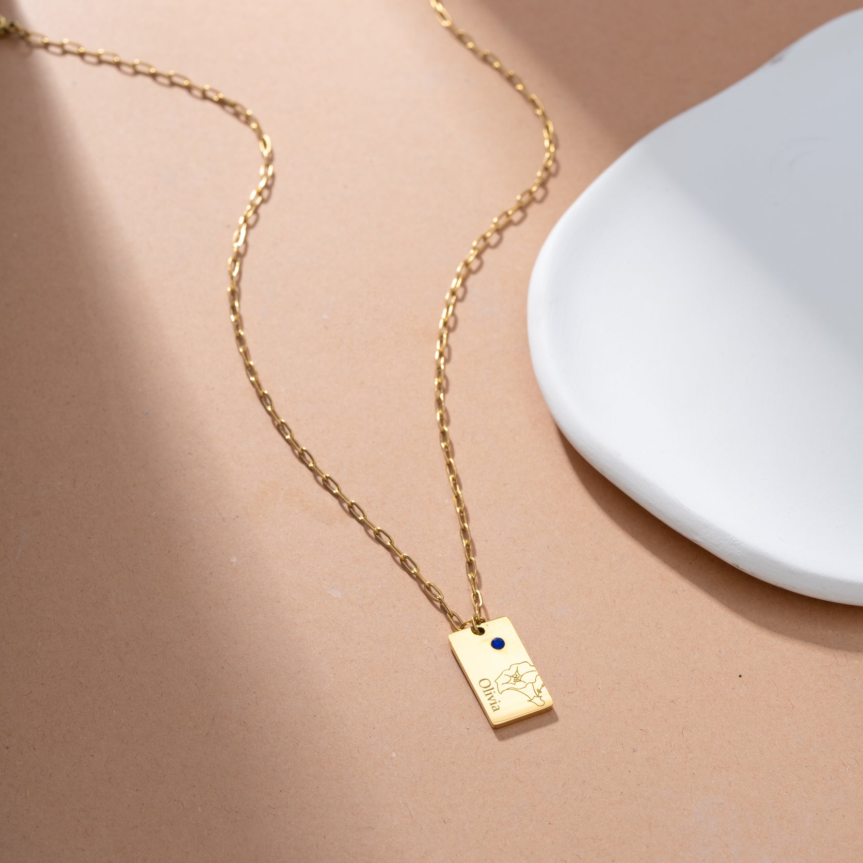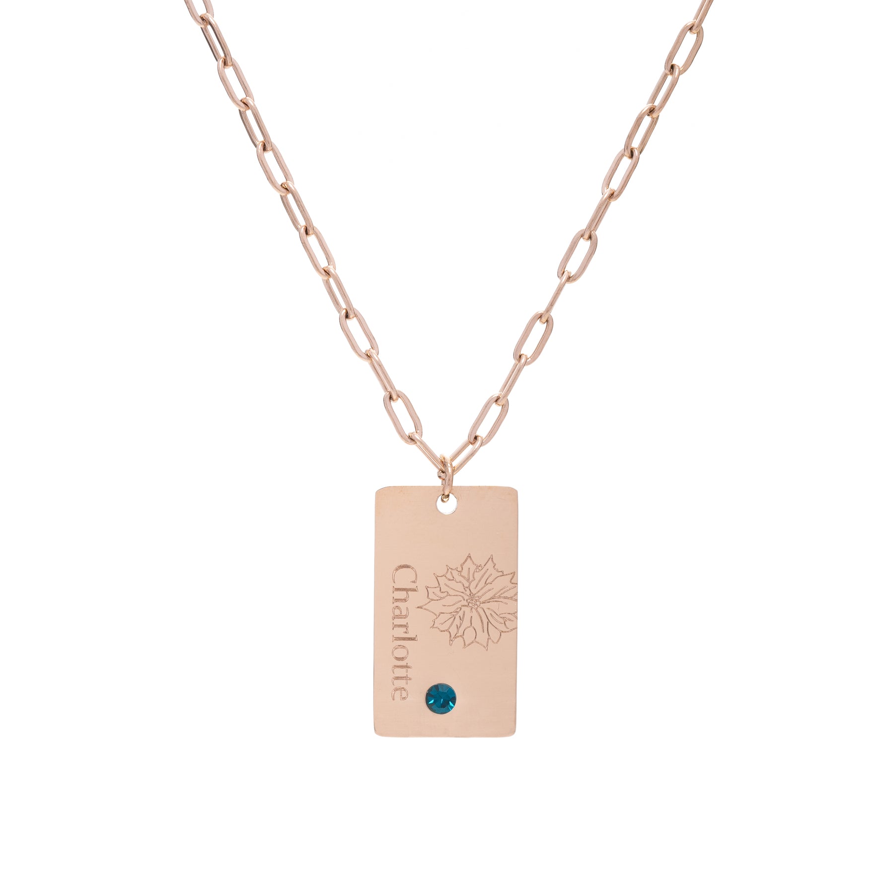 The Name and Flower Pendant with Birthstone is a delicate fusion of nature and personalization, offering an elegant and meaningful way to wear a piece of your essence. Available in classic gold, silver, and rose gold finishes, each pendant is engraved with a name and adorned with a delicately carved flower that evokes beauty and renewal.