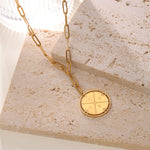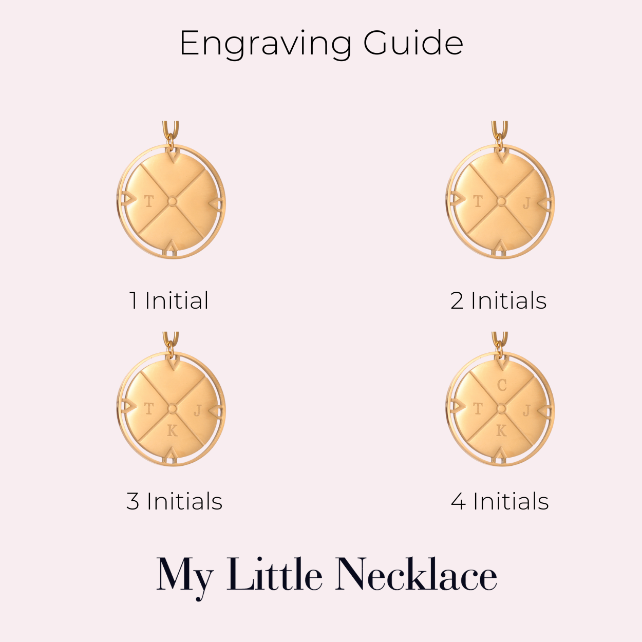 This compass medallion necklace is the perfect piece to add a personal touch to your jewelry collection. Available in three stunning finishes: silver, gold, and rose gold, it stands out with its unique circular design. You can engrave up to four initials of your choice, symbolizing your loved ones or significant letters for you. The bold and elegant chain complements the pendant, creating a modern yet timeless look. Whether worn alone or layered, this necklace brings a personalized dimension to your style, while remaining an elegant and timeless piece of jewelry.