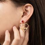 Heart Drop Earrings with Stone