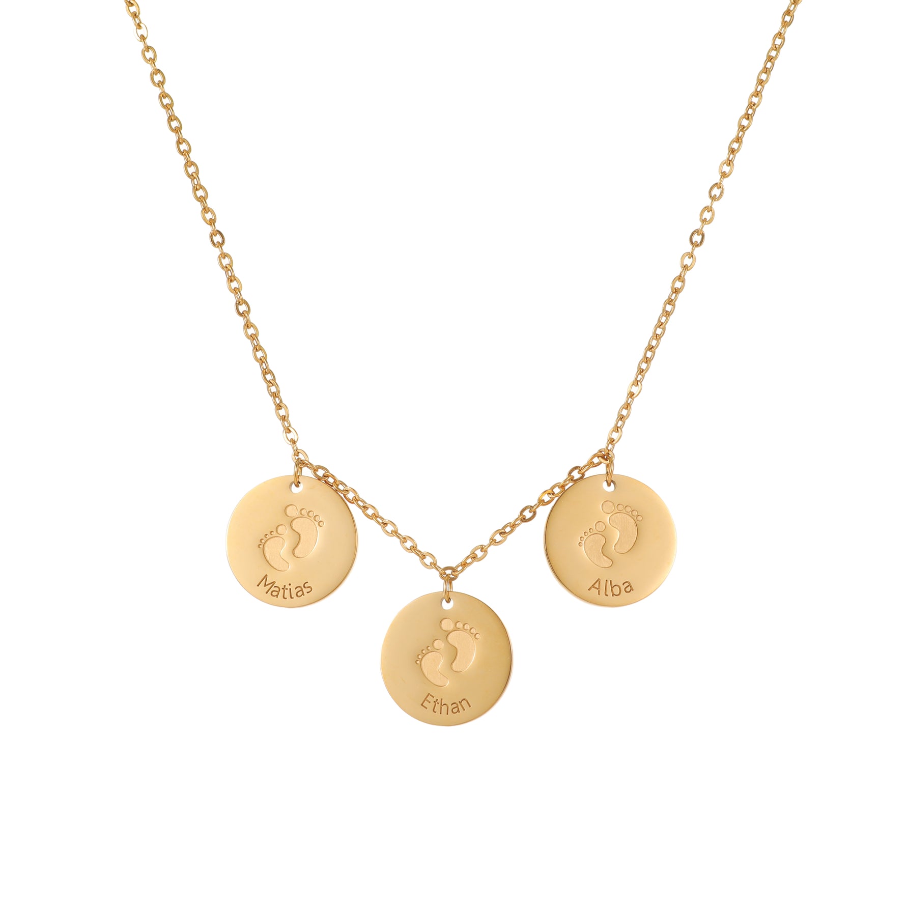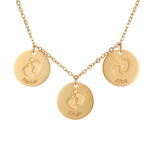 Keep your loved ones close with our Personalized Baby Discs Pendant Necklace, a beautiful keepsake that celebrates family and motherhood. This necklace can be customised with 1 to 5 discs, each engraved with a name and tiny baby feet — the perfect symbol of love, connection, and memory.
