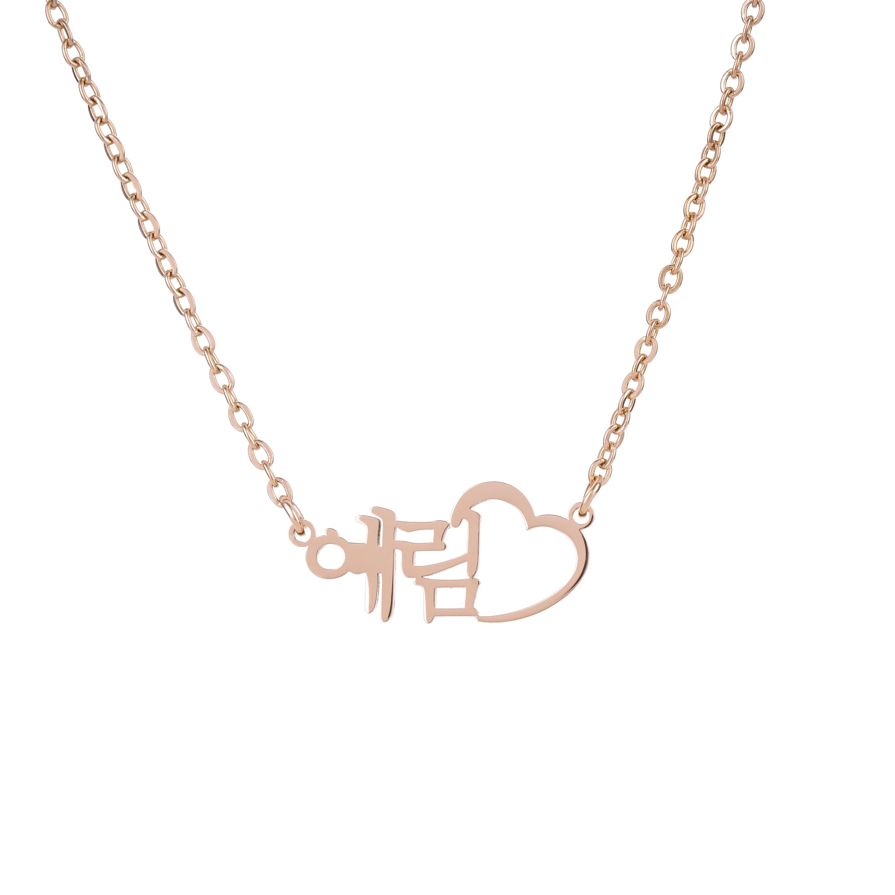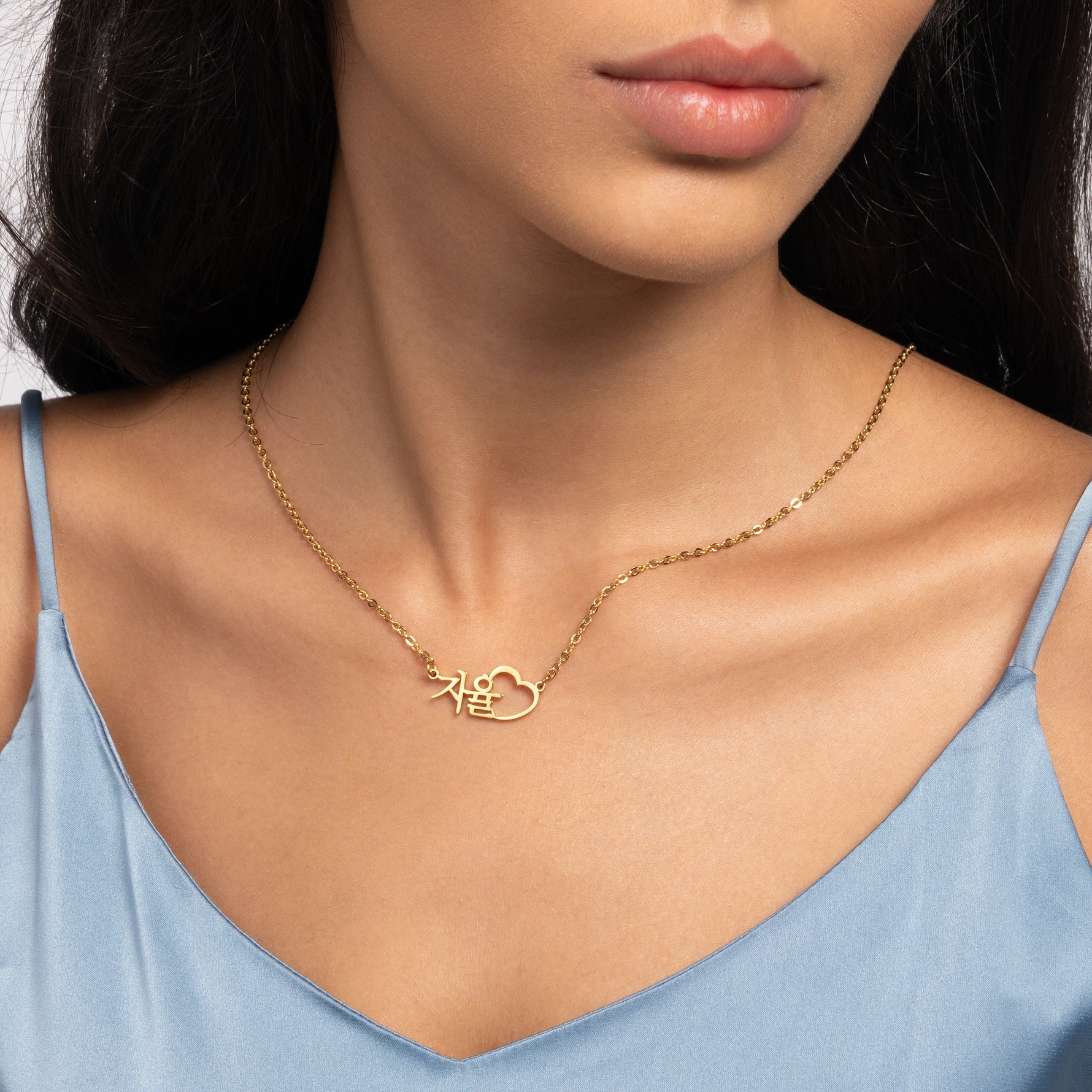 Discover our Chiseled Heart Name Necklace in Korean, personalized elegance signed My Little Necklace. This finely crafted piece of jewelry, in gold, silver or rose gold, incorporates your first name in a romantic design with an intertwined heart. Much more than an accessory, it is a reflection of your identity and your precious connections.