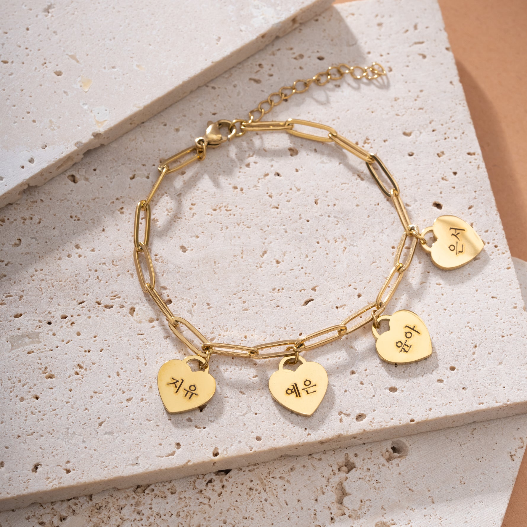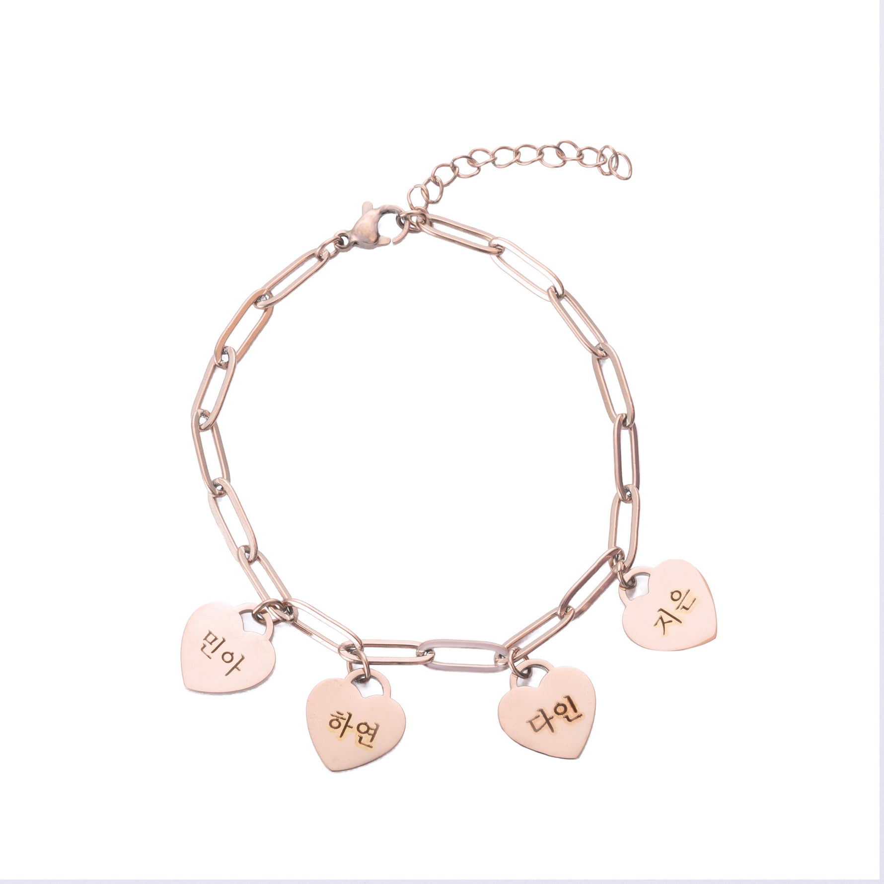 Explore deep connection with our Personalized Multiple Heart Bracelet in Korean. Each heart represents a unique connection in your life, customizable with first names or special words. Made to order in gold, silver or rose gold, it is much more than a piece of jewelry; it is a symbol of love and friendship.