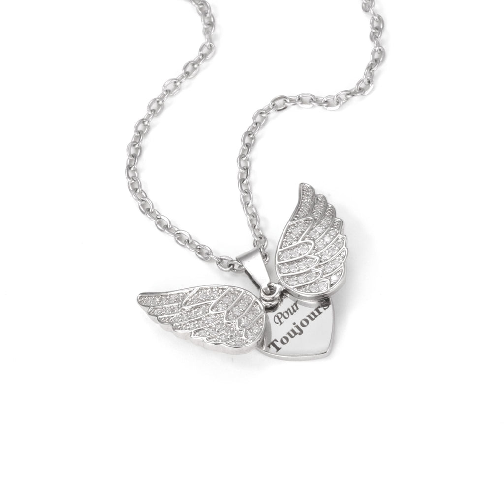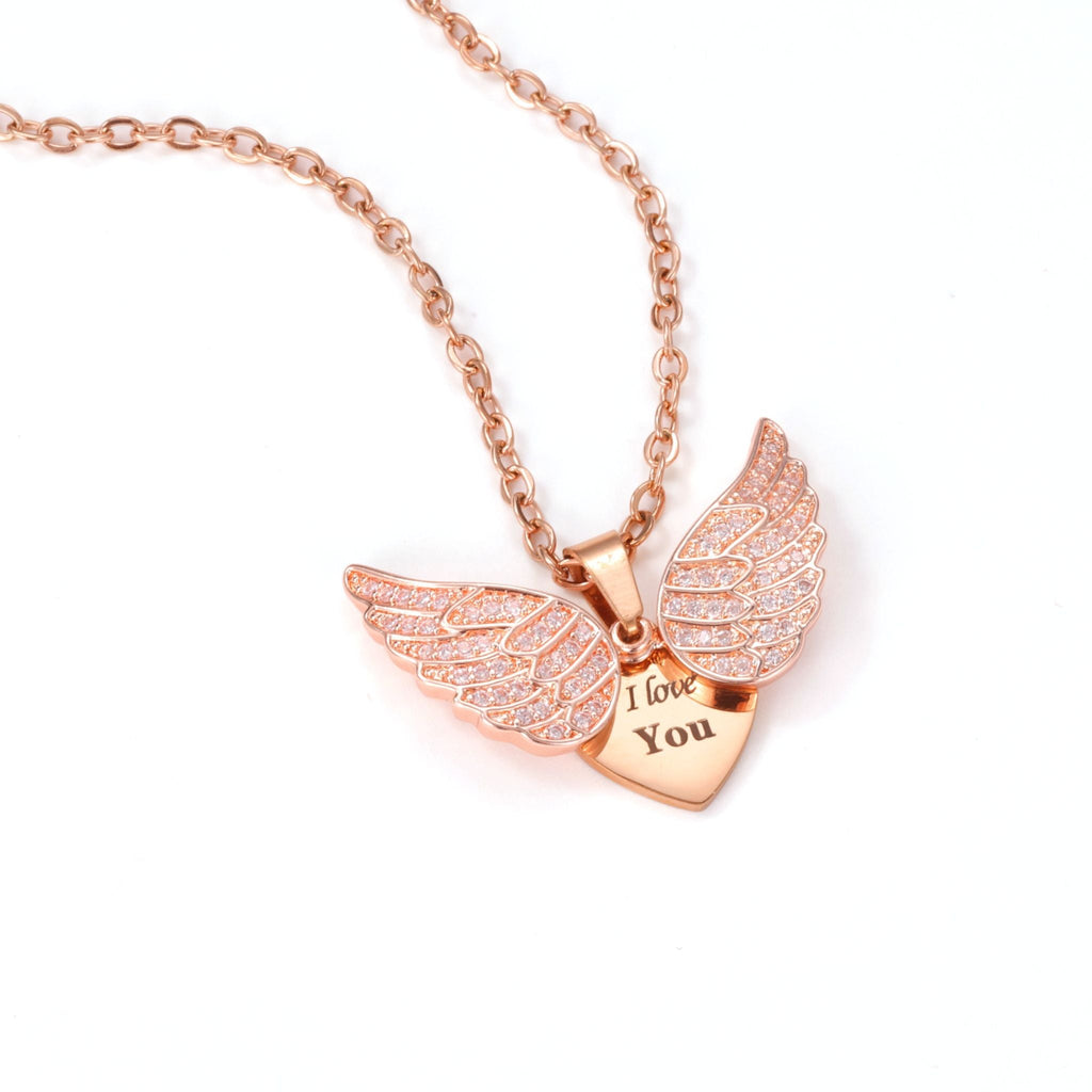 Keep love close to your heart with the Angel Wings Hidden Message Necklace — a unique piece that combines elegance with a secret meaning.