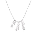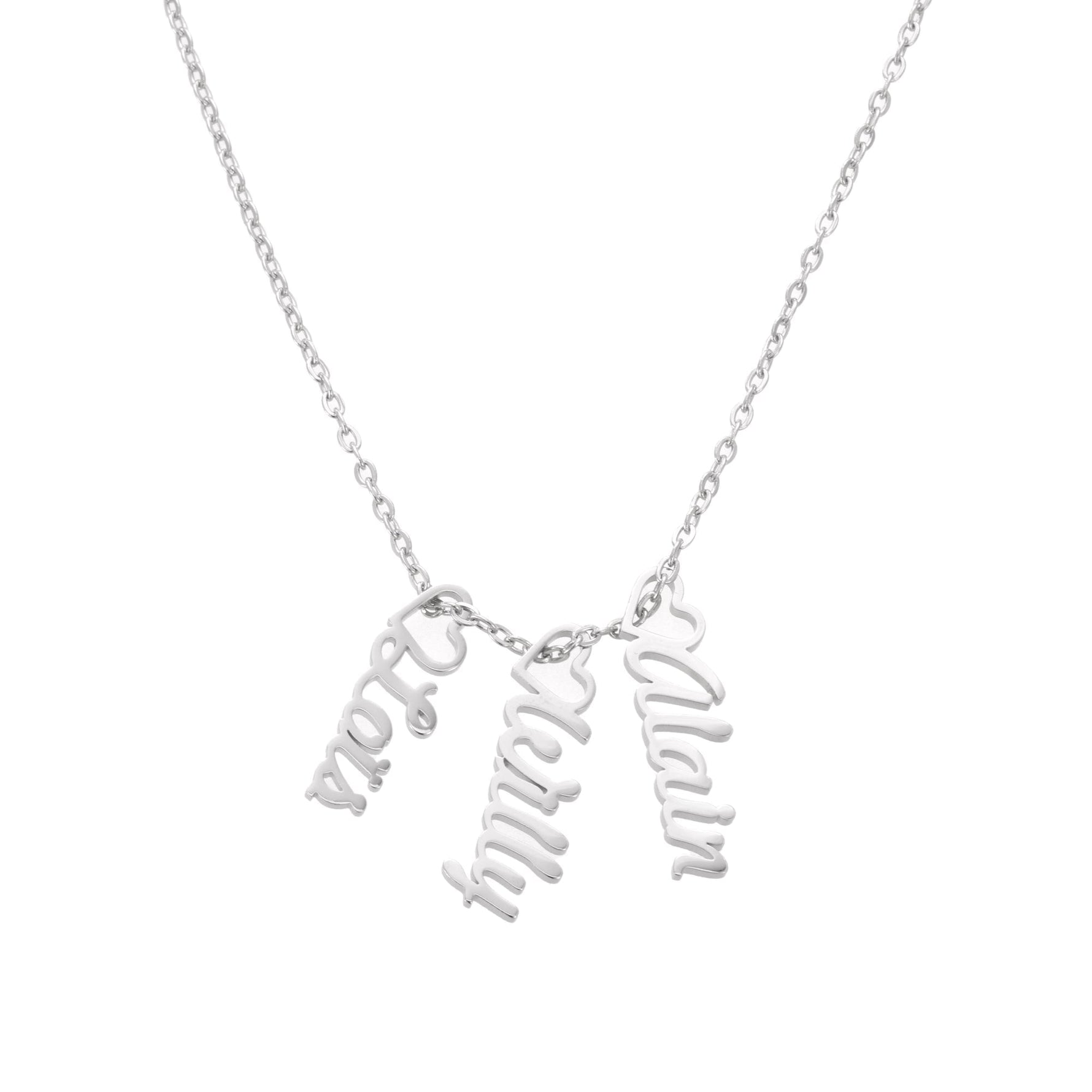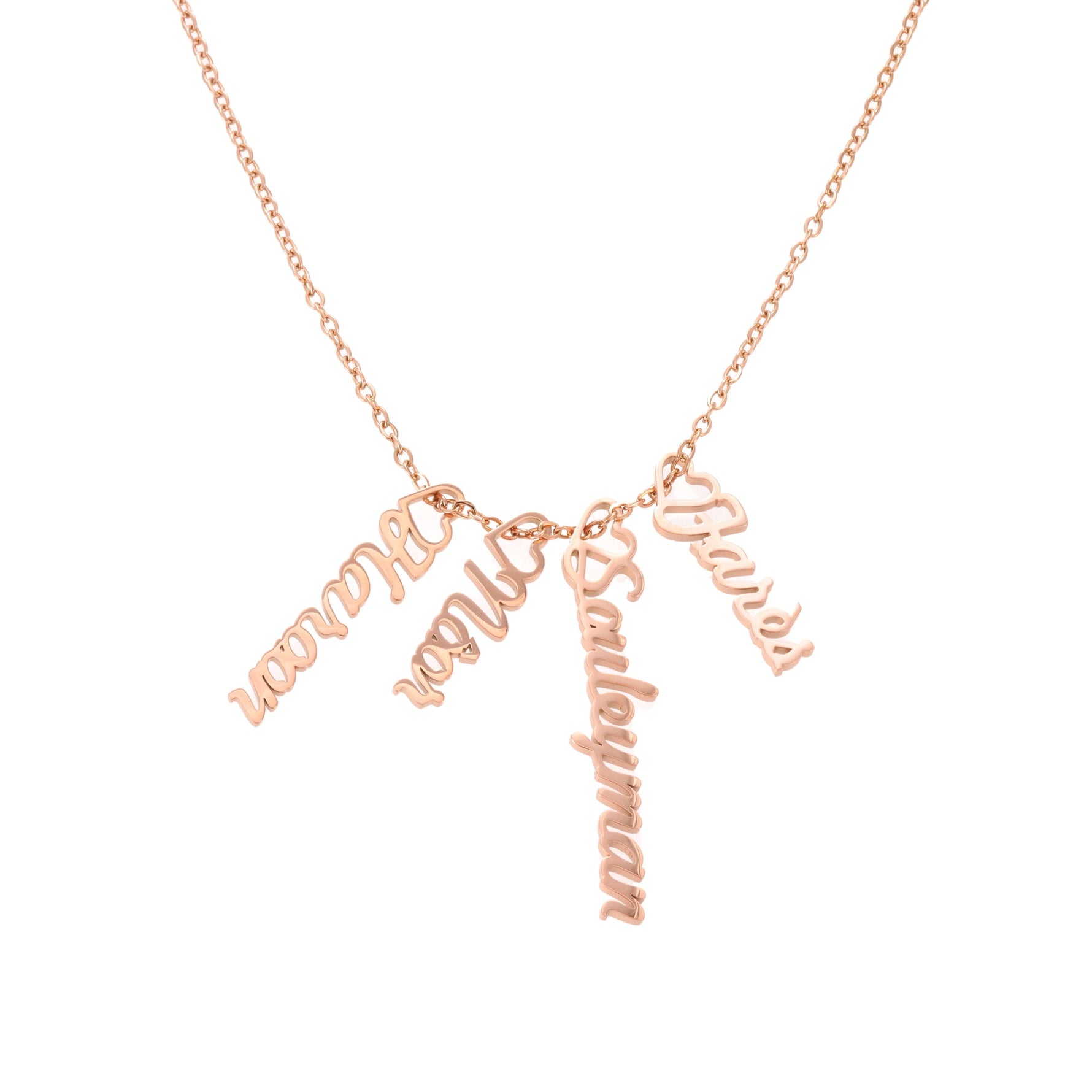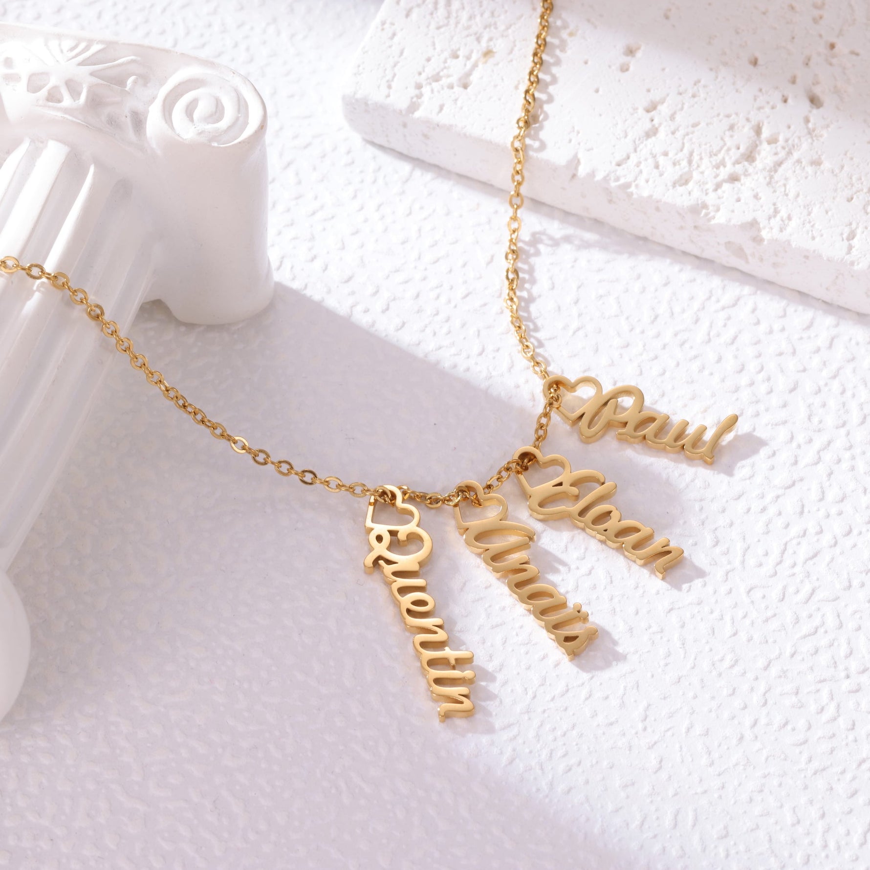 Each name pendant is delicately suspended along the chain, creating a fluid, elegant effect that catches the light with every movement. The cascading design adds a modern touch while highlighting each name in its own unique way.