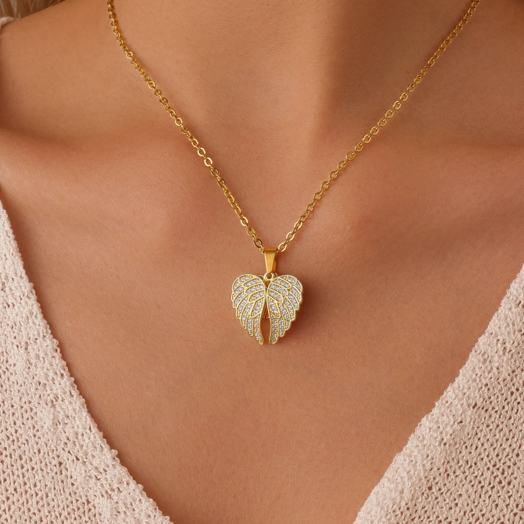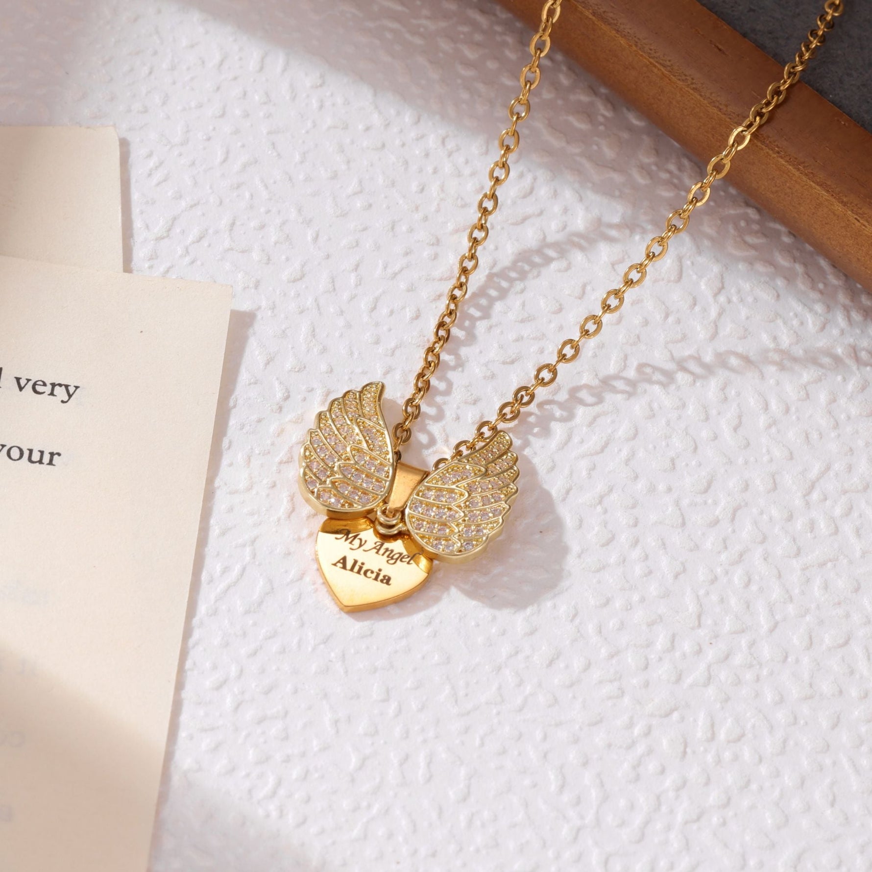 Keep love close to your heart with the Angel Wings Hidden Message Necklace — a unique piece that combines elegance with a secret meaning.
