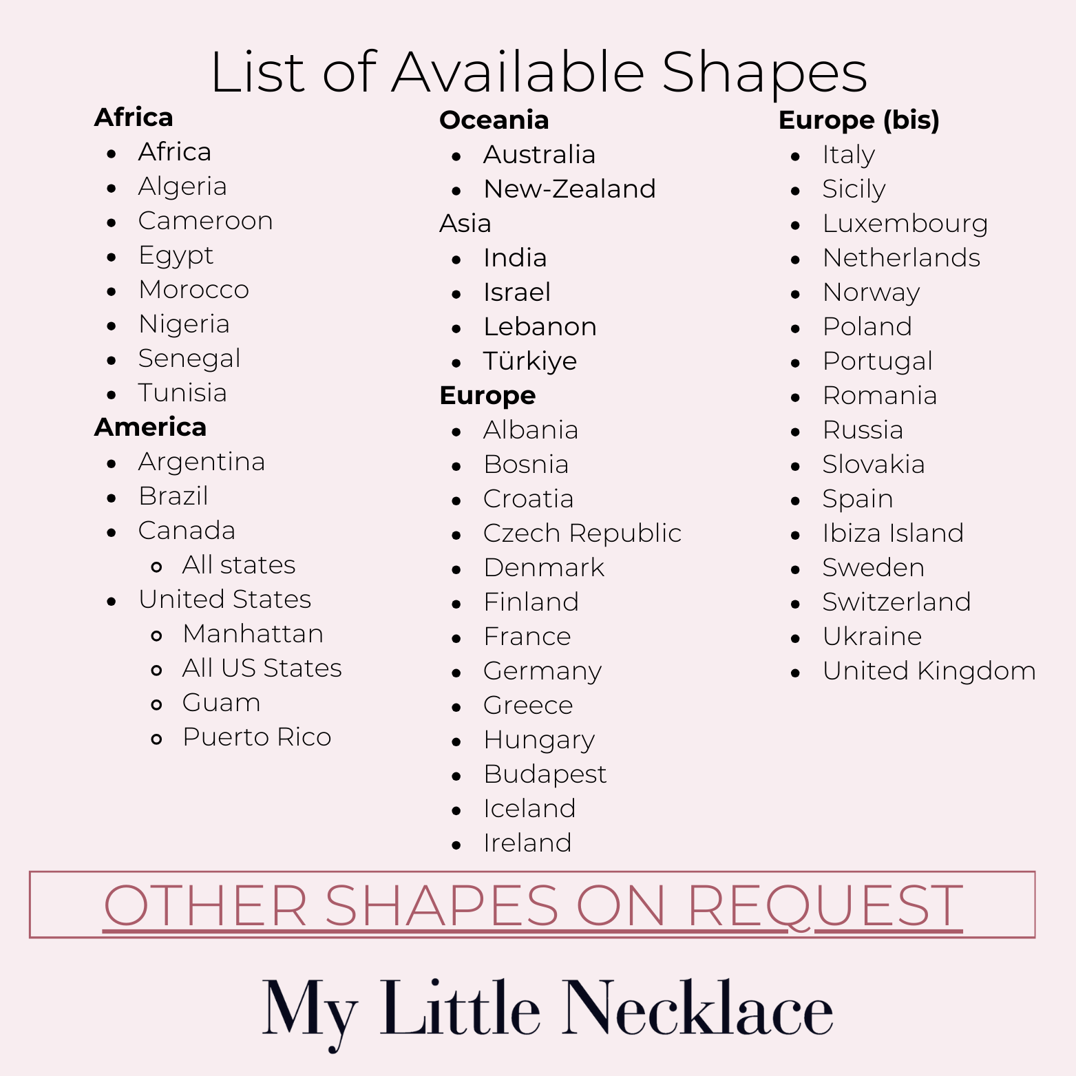 En My Little Necklace , puedes personalizar tus joyas con varios idiomas y alfabetos , como árabe, ruso y otras escrituras no latinas. También aceptamos caracteres especiales y símbolos como @, $, &, *, ♡ y más.