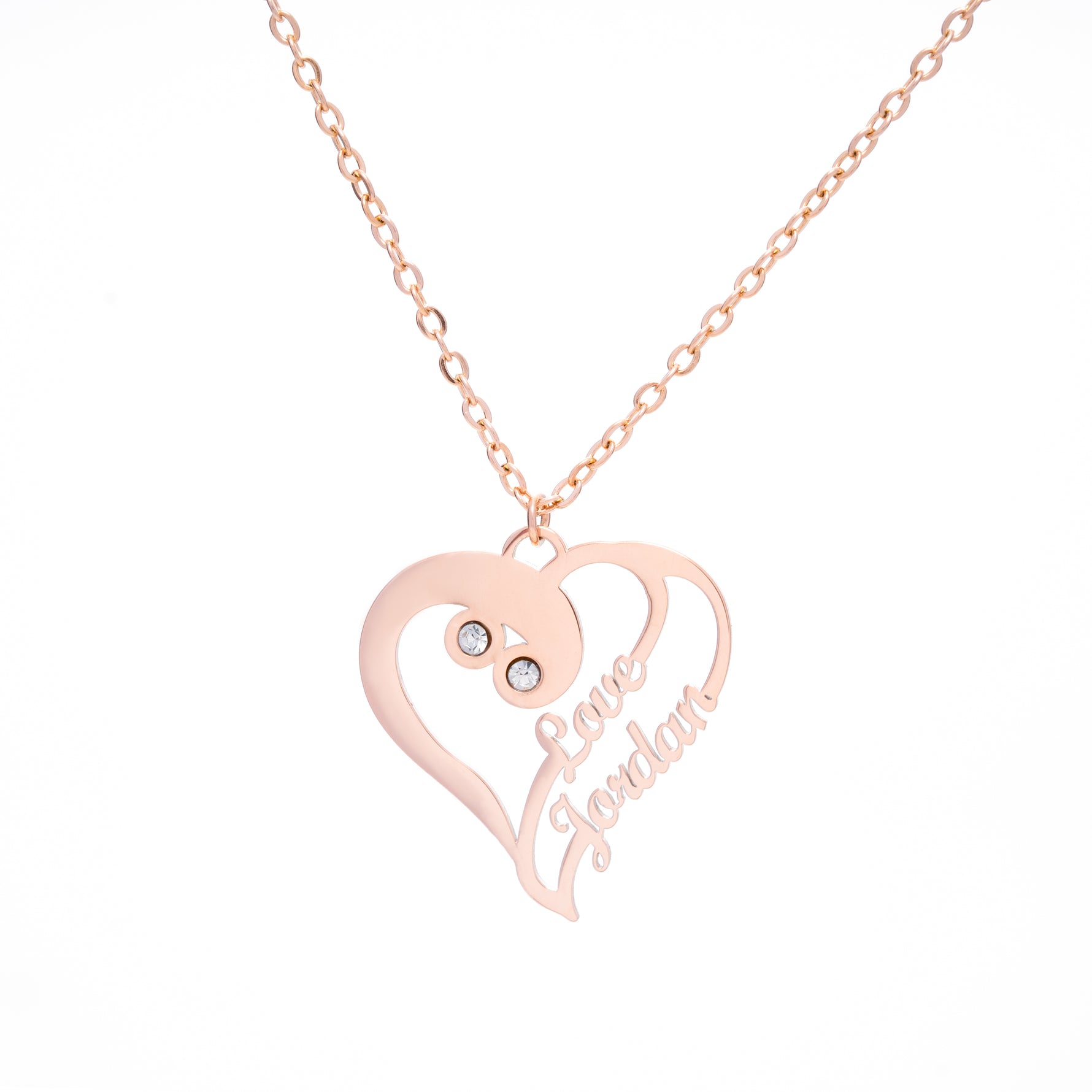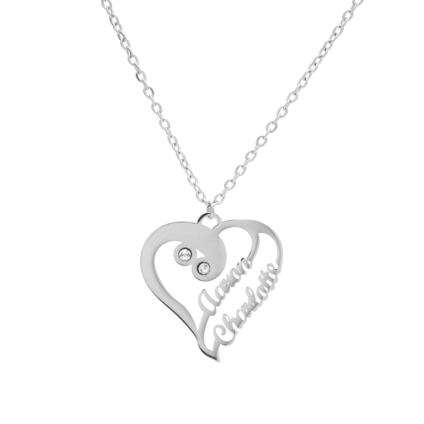 Collar con colgante personalizado de doble corazón fusionado y dos nombres