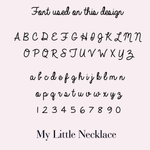 En My Little Necklace , puedes personalizar tus joyas con varios idiomas y alfabetos , como árabe, ruso y otras escrituras no latinas. También aceptamos caracteres especiales y símbolos como @, $, &, *, ♡ y más.