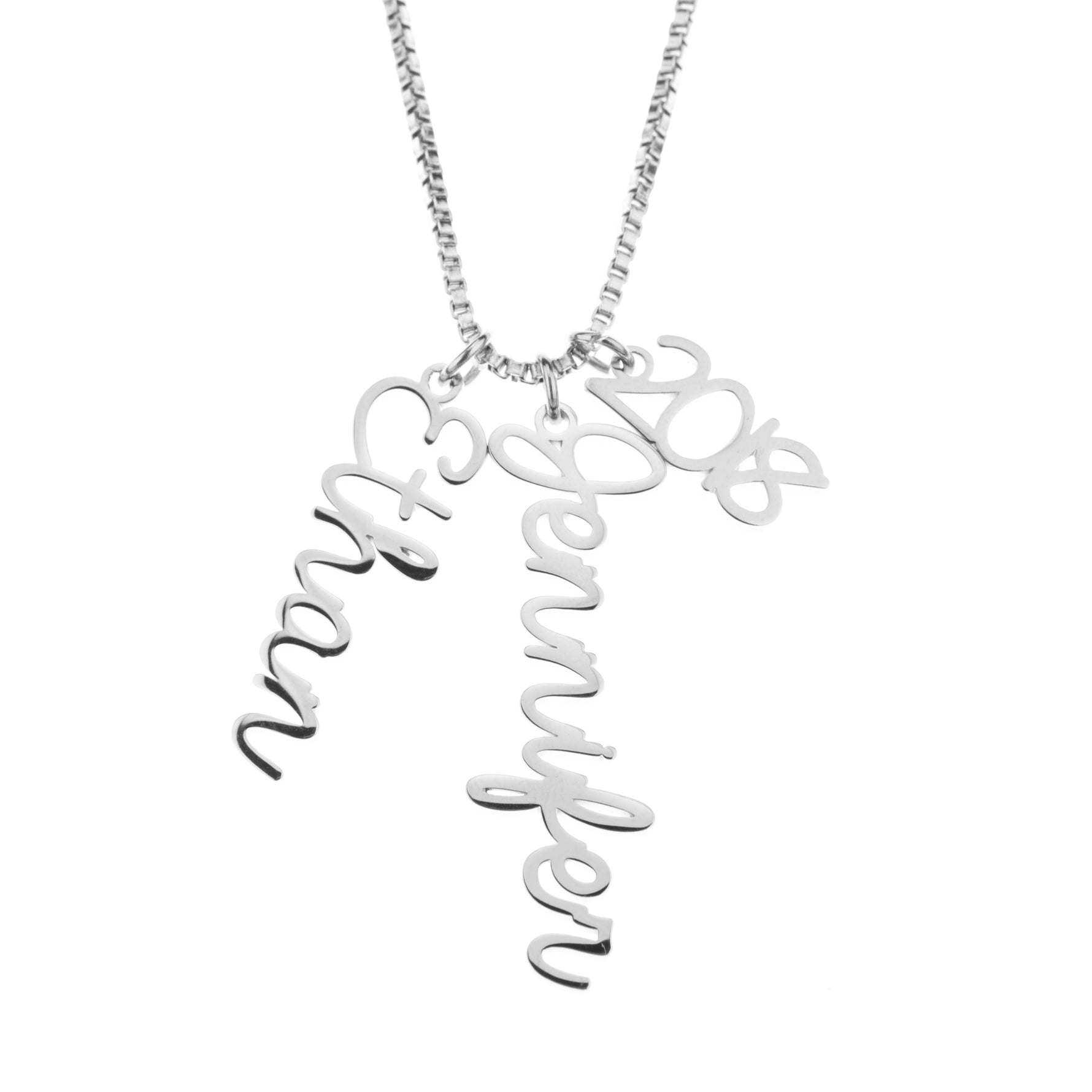 Este maravilloso collar viene con la opción de elegir de uno a tres nombres o años diferentes.