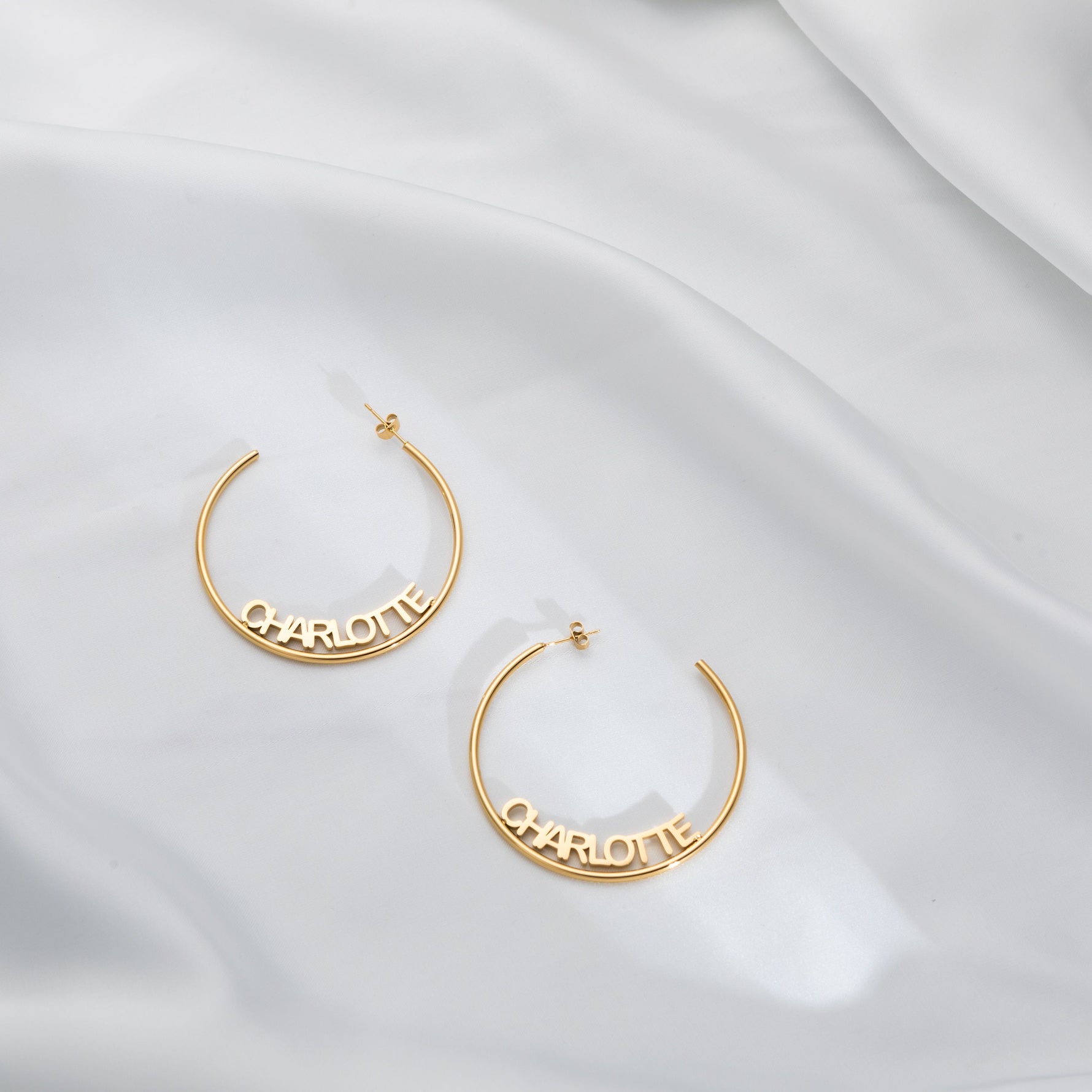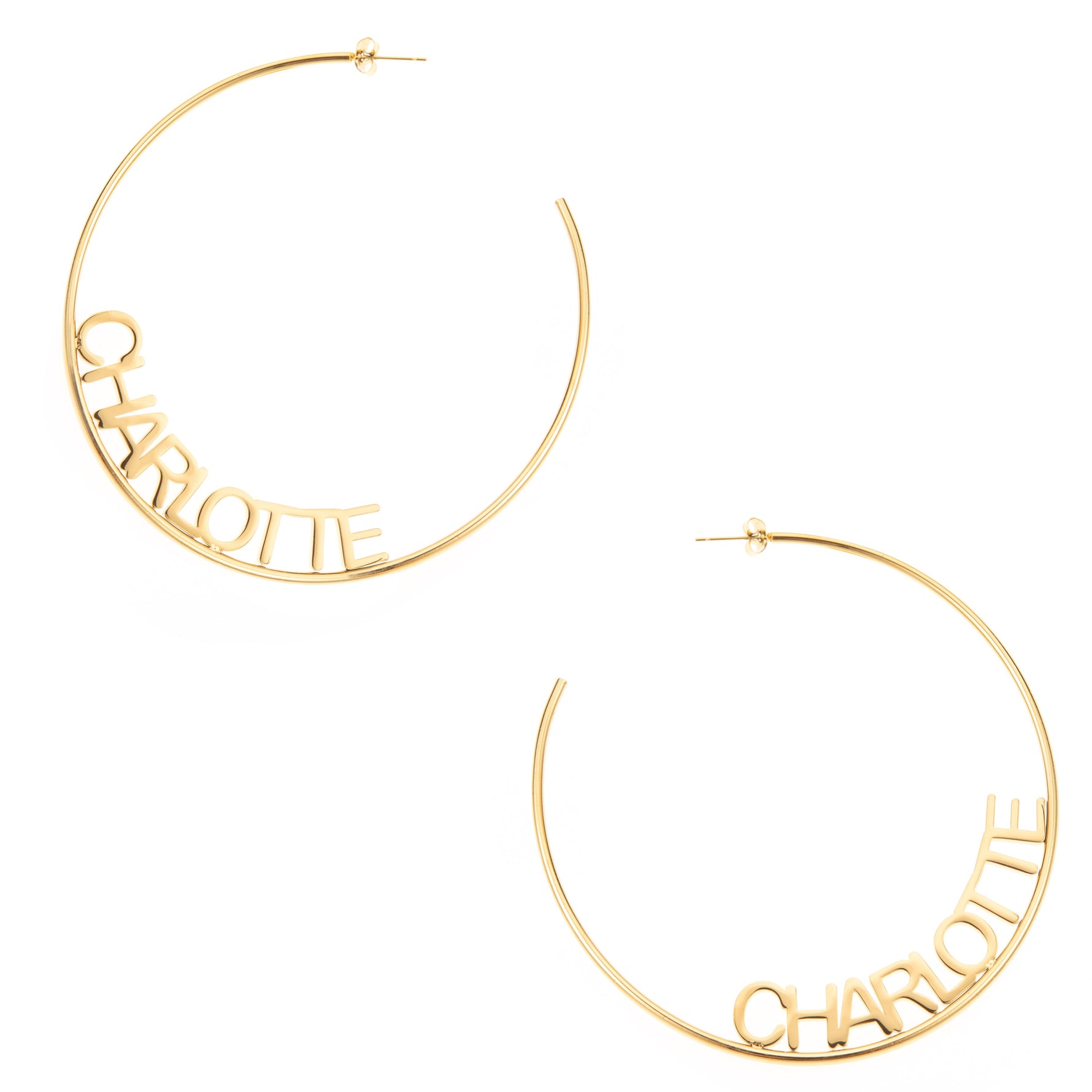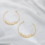 Dale un toque inolvidable a tu estilo con nuestros aretes de aro abiertos personalizados , un accesorio moderno diseñado para combinar estilo e individualidad. Cada aro lleva grabado el nombre o la palabra que elijas, que se integra a la perfección en la curva del aro para un look único.