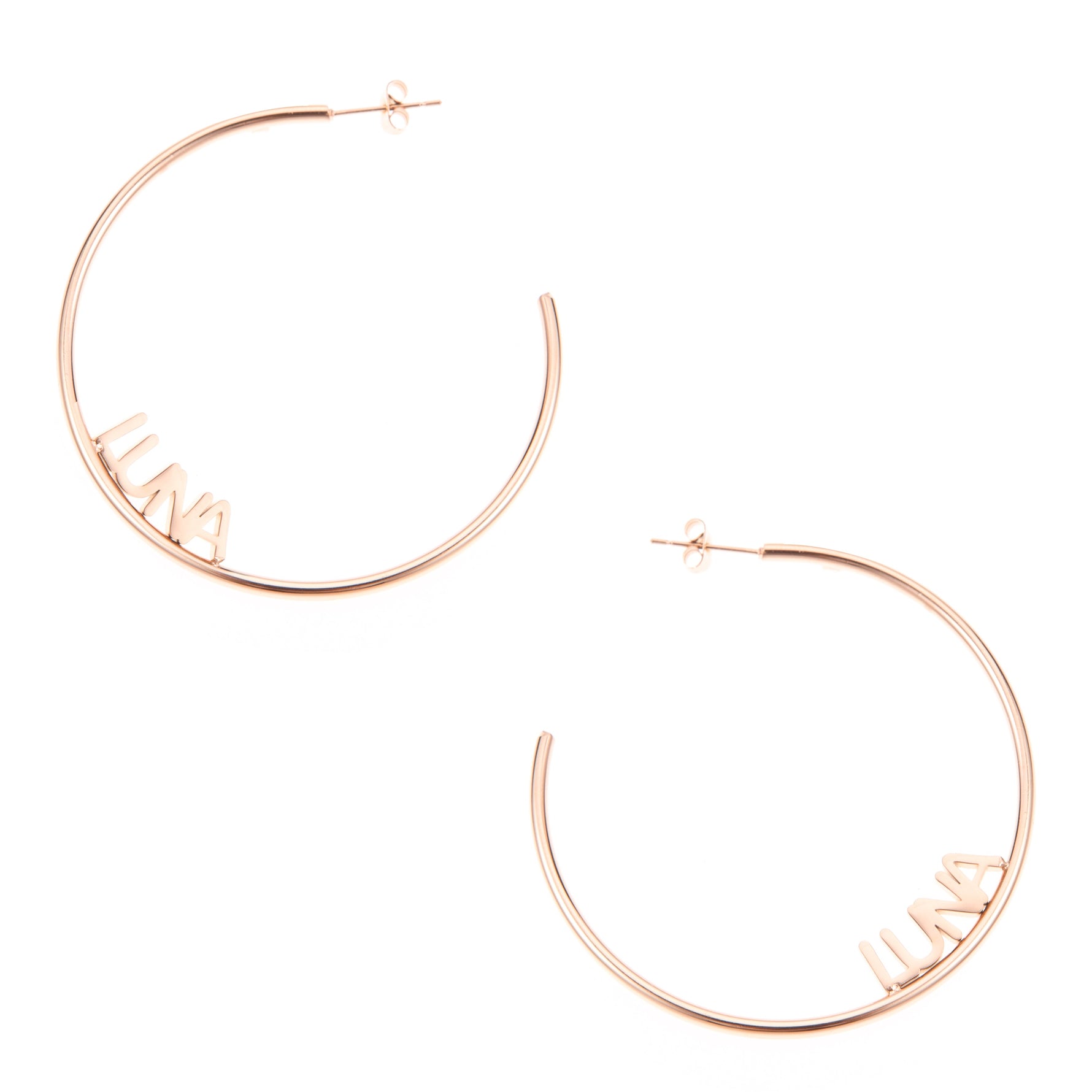 Hechos de acero inoxidable y bañados en oro, oro rosa o plata , estos pendientes están hechos a medida . Ligeros y fáciles de llevar, están disponibles en tres tamaños ( 5 cm, 7,6 cm y 10 cm de diámetro ) para que puedas elegir el par perfecto, desde los más chic para diario hasta los más llamativos.