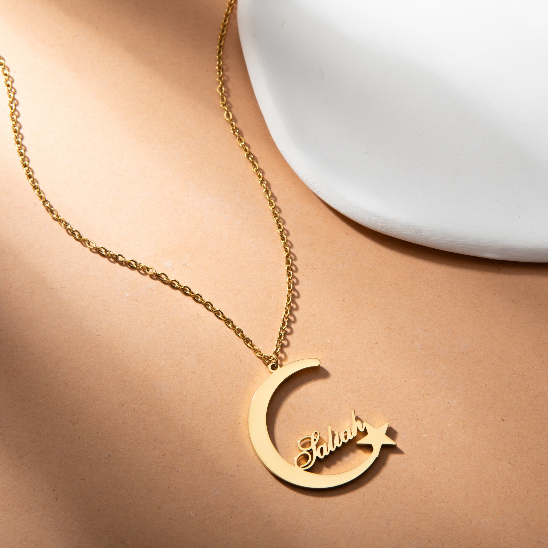 ✨ Personalizado con el nombre que elijas ✨ Elegante diseño de luna creciente y estrella. ✨ Envío rápido y seguro