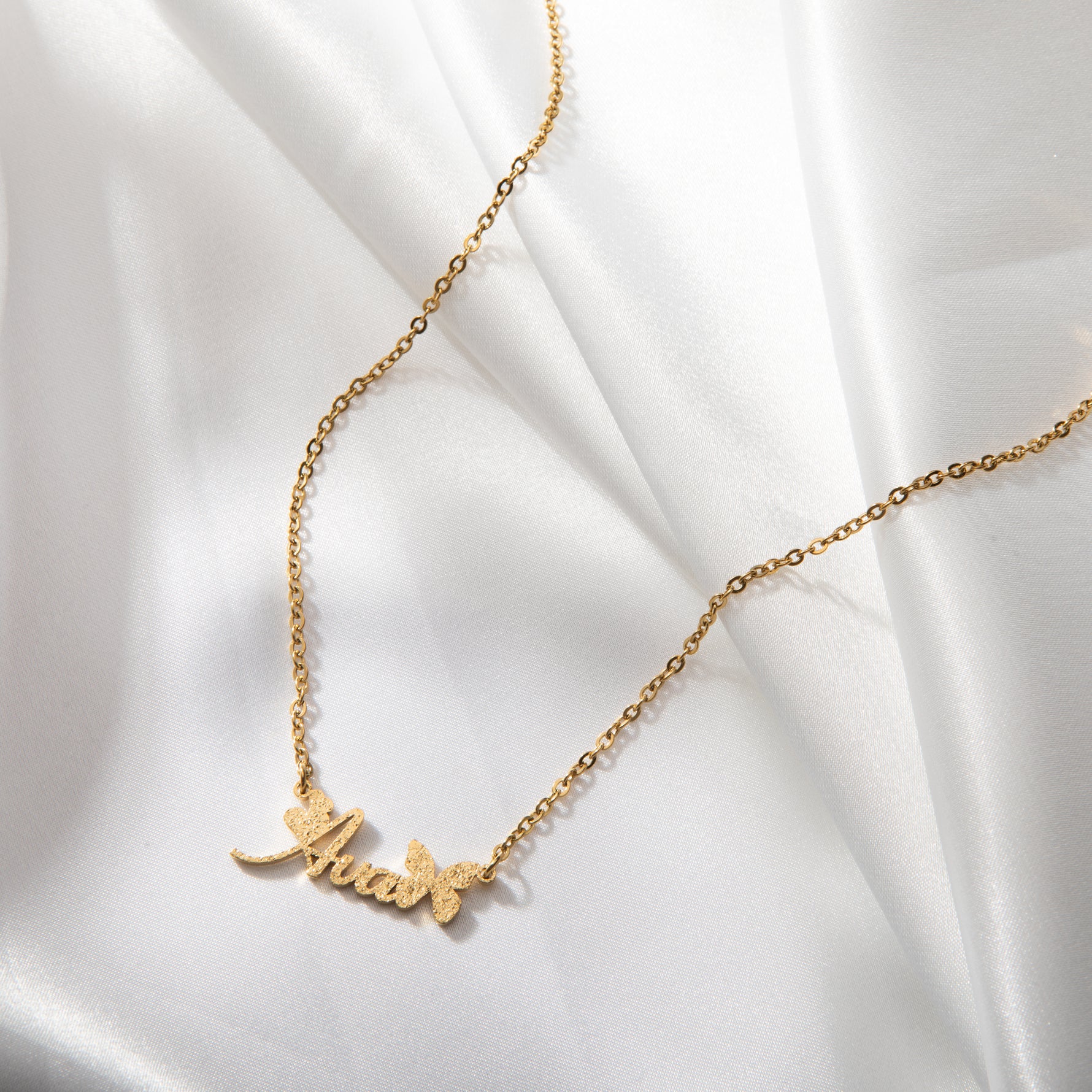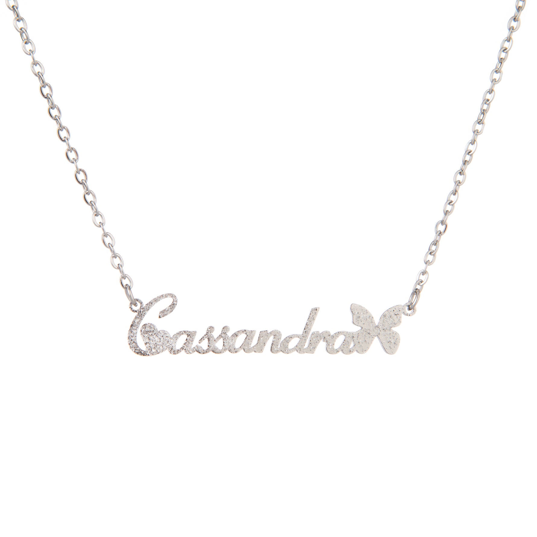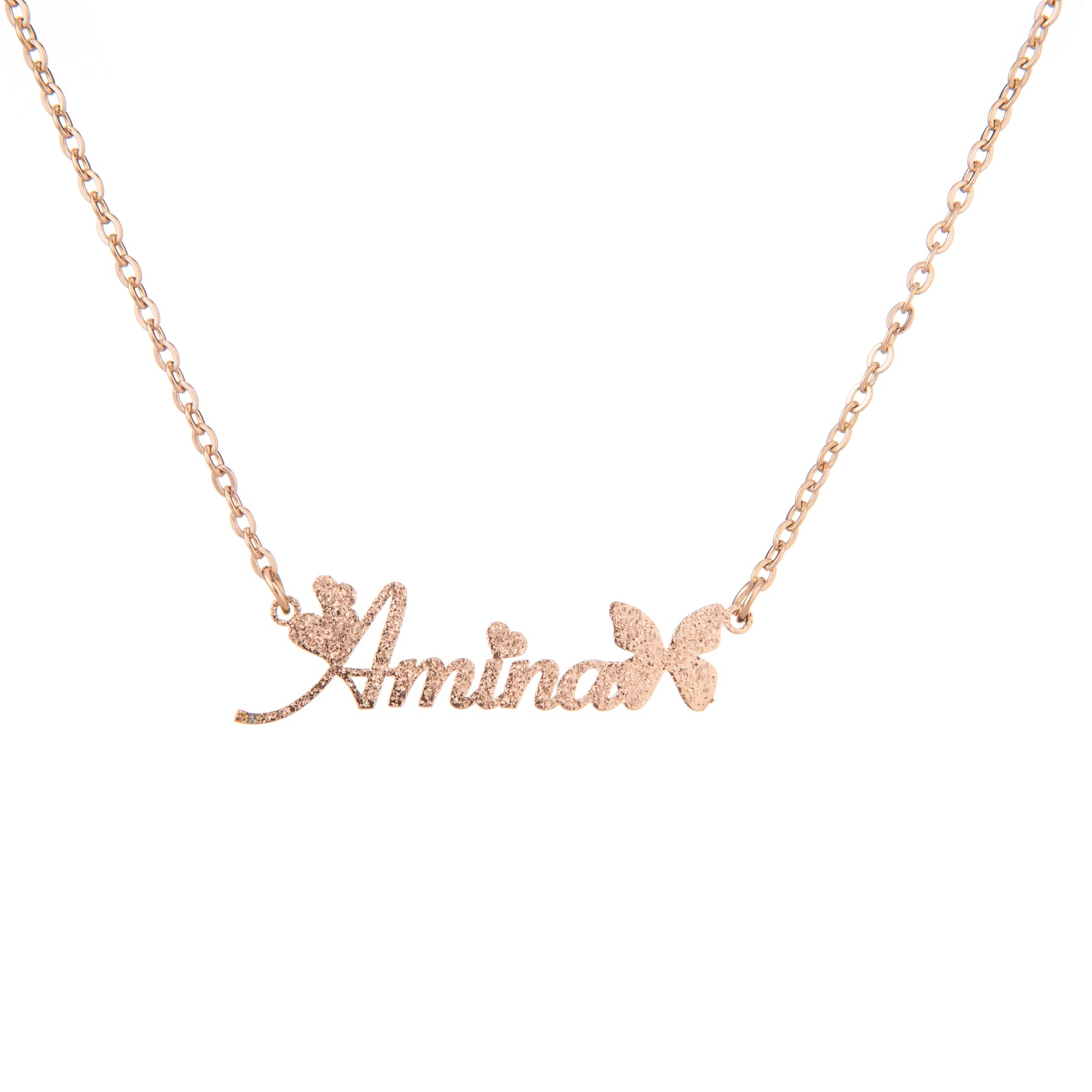 Collar con nombre, mariposa y purpurina