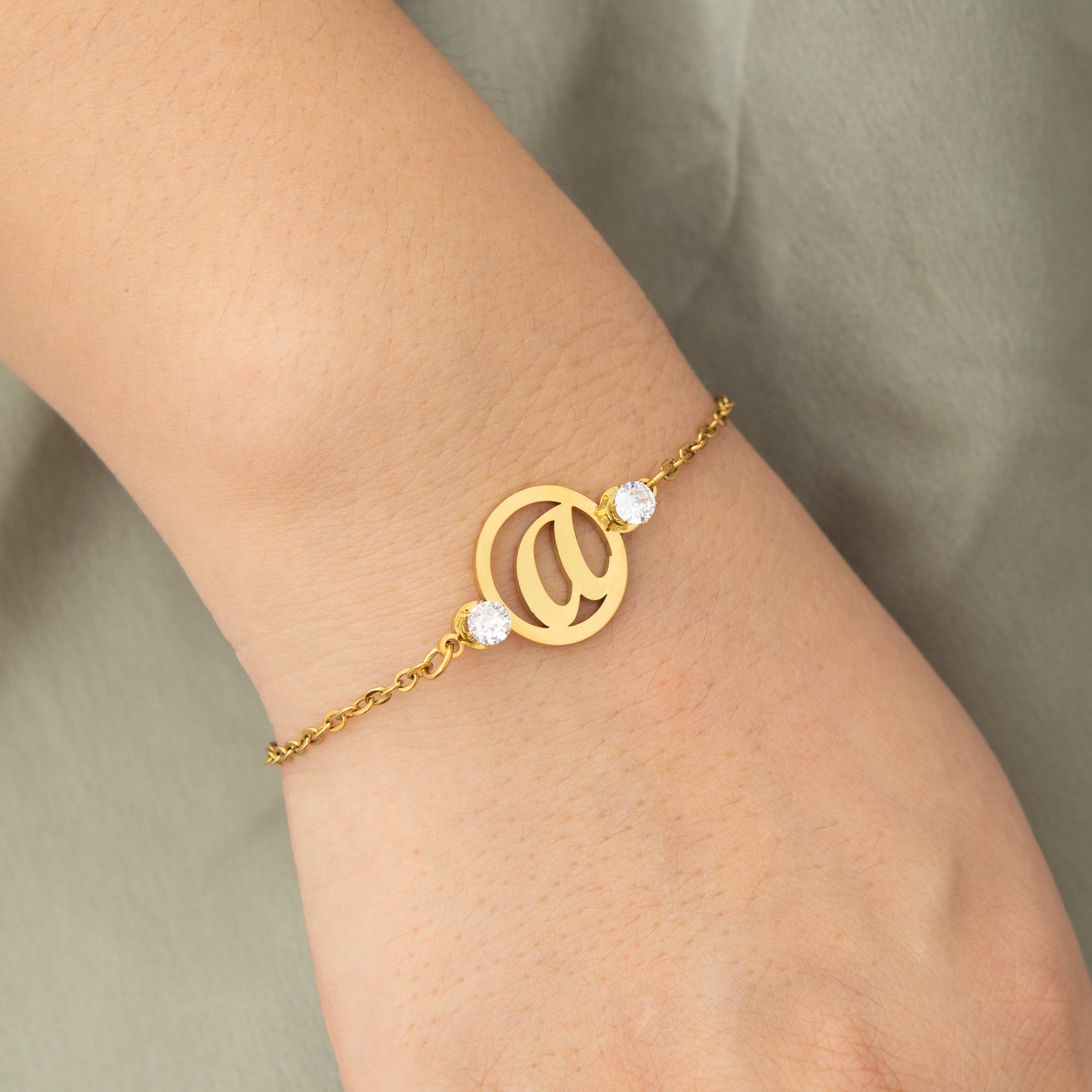 Expresa tu individualidad con nuestra pulsera personalizada con inicial y elegantes piedras. Este delicado y sofisticado accesorio va más allá de la moda; encarna tu espíritu distintivo y tus valores más profundos .