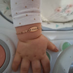 Perfecta para dar la bienvenida a un recién nacido, celebrar un primer cumpleaños o marcar un hito , esta pulsera de bebé grabada es un regalo lleno de amor y significado.