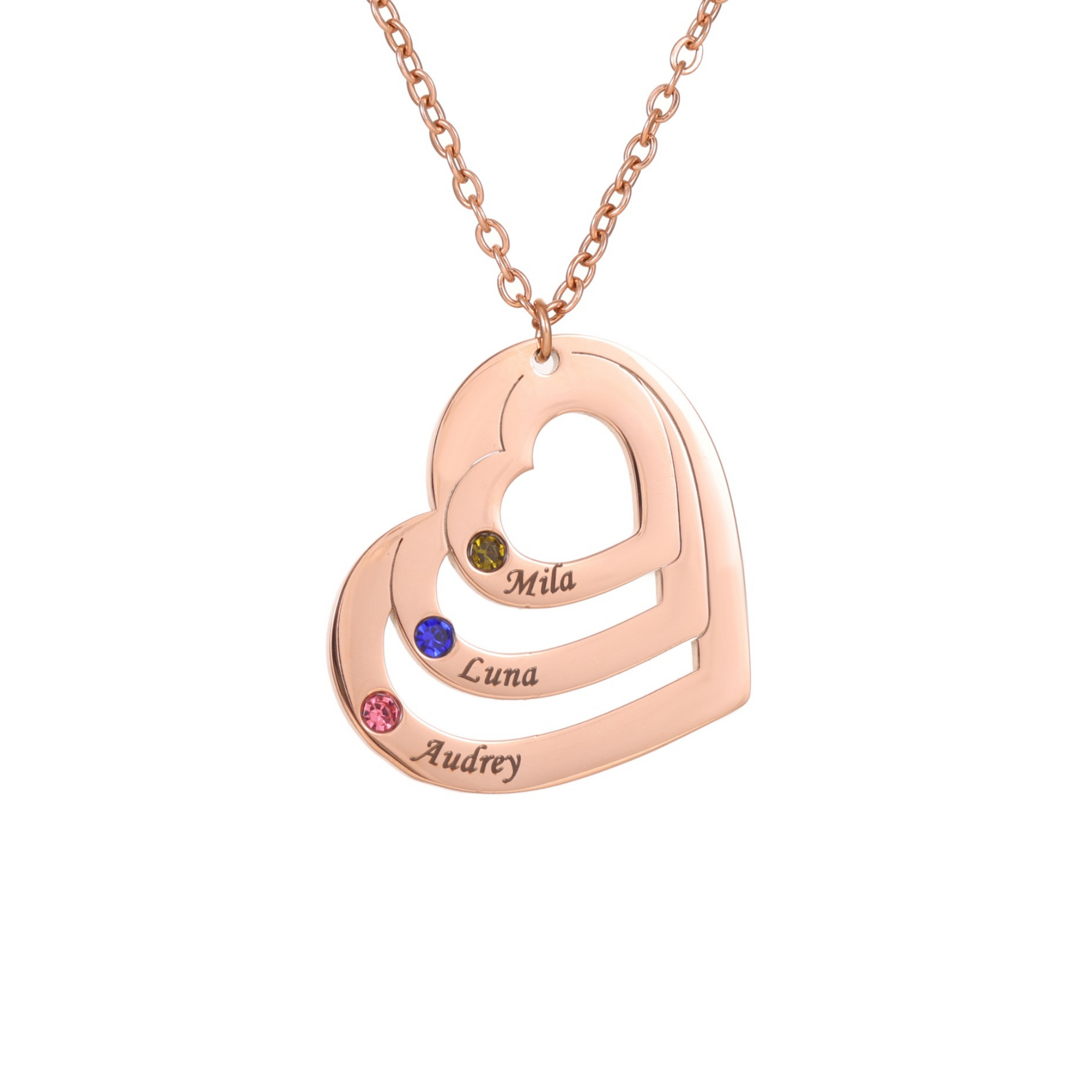 Uno, dos o tres corazones, un solo vínculo: el collar de corazones entrelazados con piedras de nacimiento celebra el amor en su forma más pura. Perfecto para parejas, madres e hijos, o amigos de toda la vida, esta pieza es un brillante homenaje a la conexión.