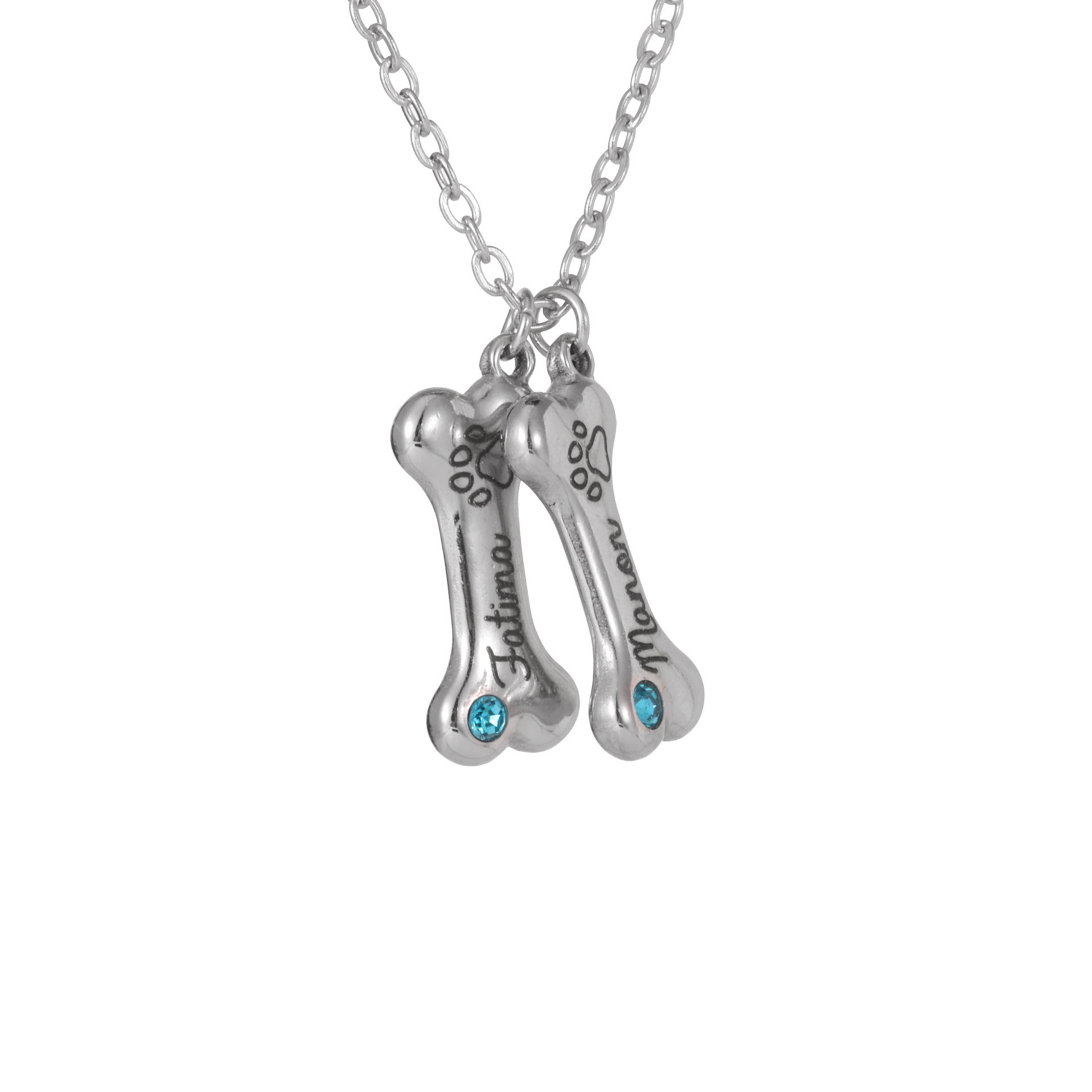 Expresa el amor y el cariño que sientes por tu mascota con este collar de hueso personalizado. Adornado con brillantes cristales, cada hueso puede grabarse con el nombre de tu mascota, junto con una adorable huella. Disponible en plata, oro y oro rosa, este collar único y refinado es perfecto para celebrar los momentos inolvidables con tus mascotas. Puedes grabar uno o más huesos, según el número de mascotas que quieras honrar.