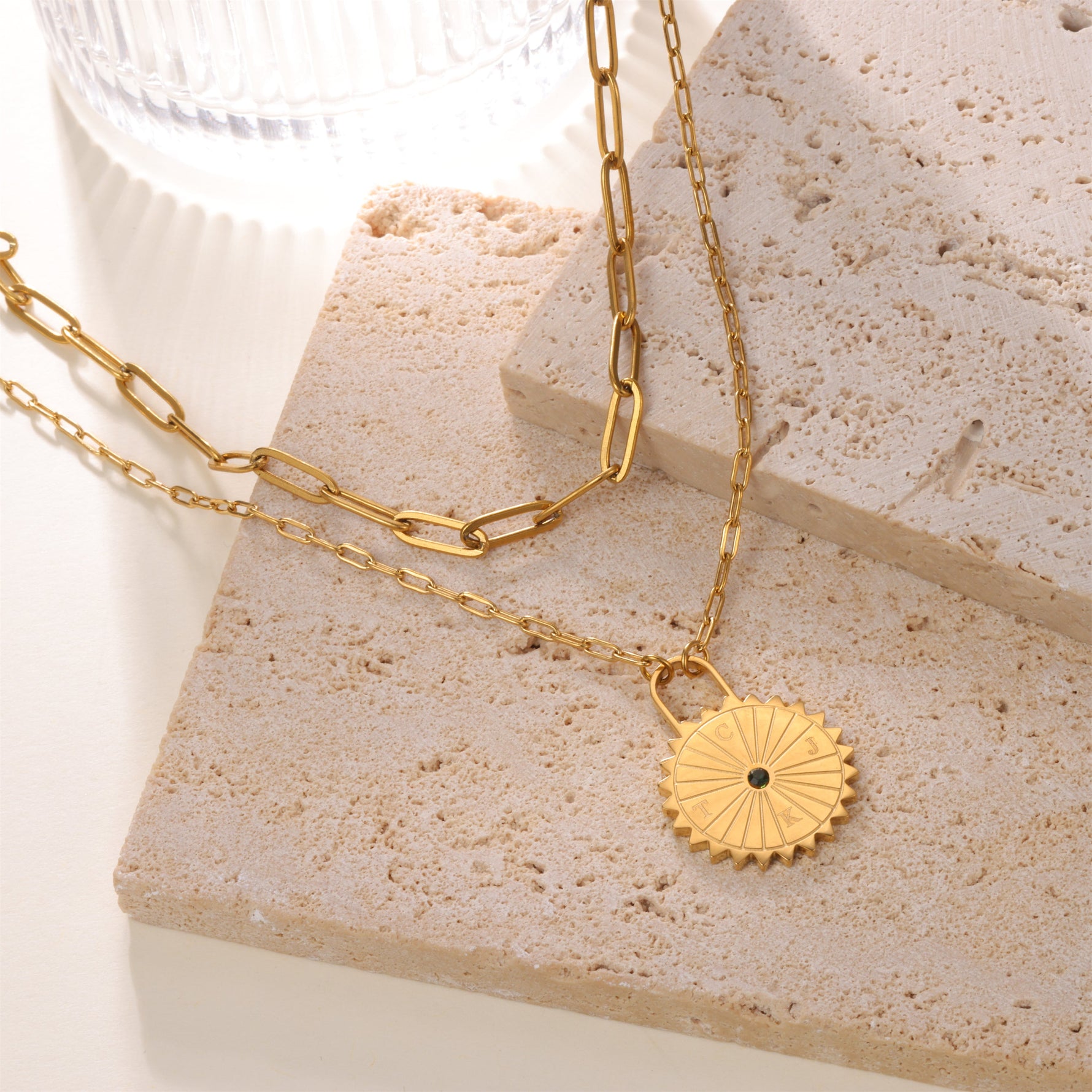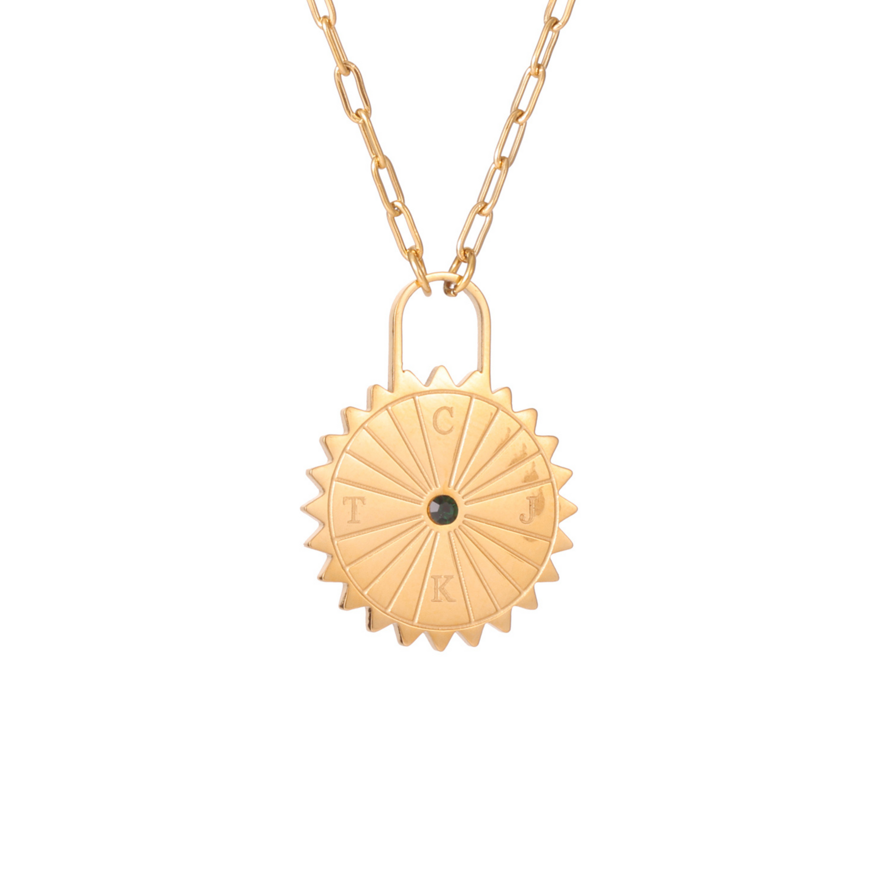 Collar con candado de sol personalizado con iniciales y piedra