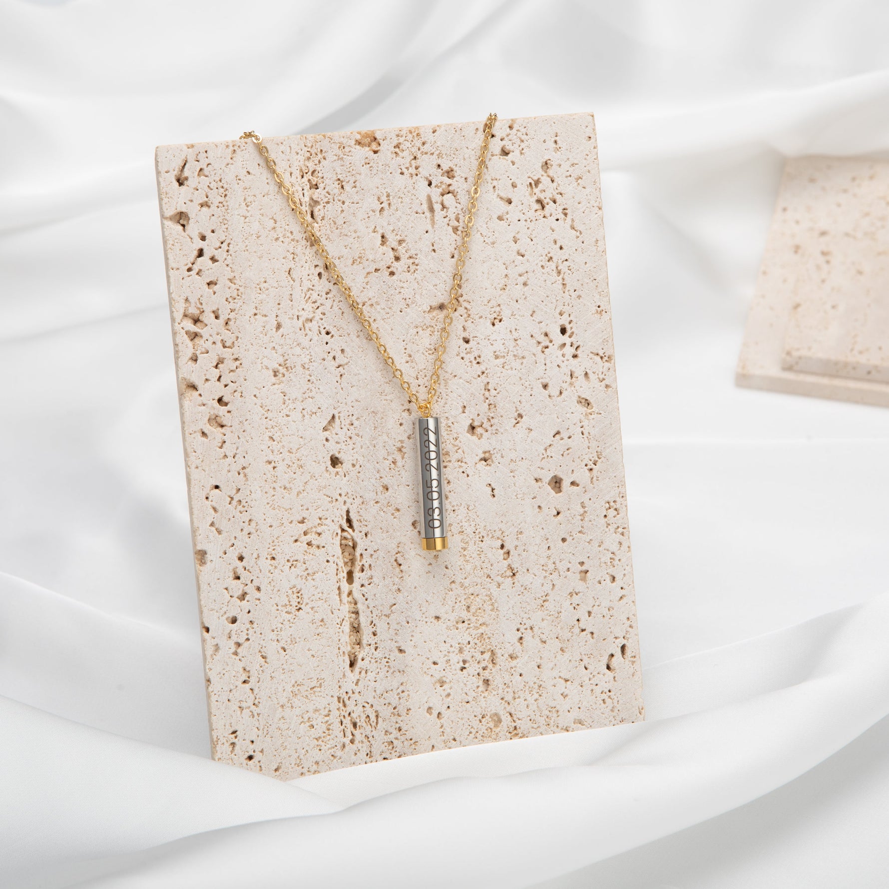 Presentamos nuestro colgante personalizado de doble tubo, ¡diseñado para mantener tu mensaje oculto hasta que lo reveles ! Con un tubo dentro del otro, esta pieza única solo requiere abrirse para revelar tu grabado personalizado. Hecho a pedido con un hermoso acabado plateado, el tubo interior está disponible en oro, plata u oro rosa. Cada colgante está cuidadosamente elaborado para un ajuste perfecto.