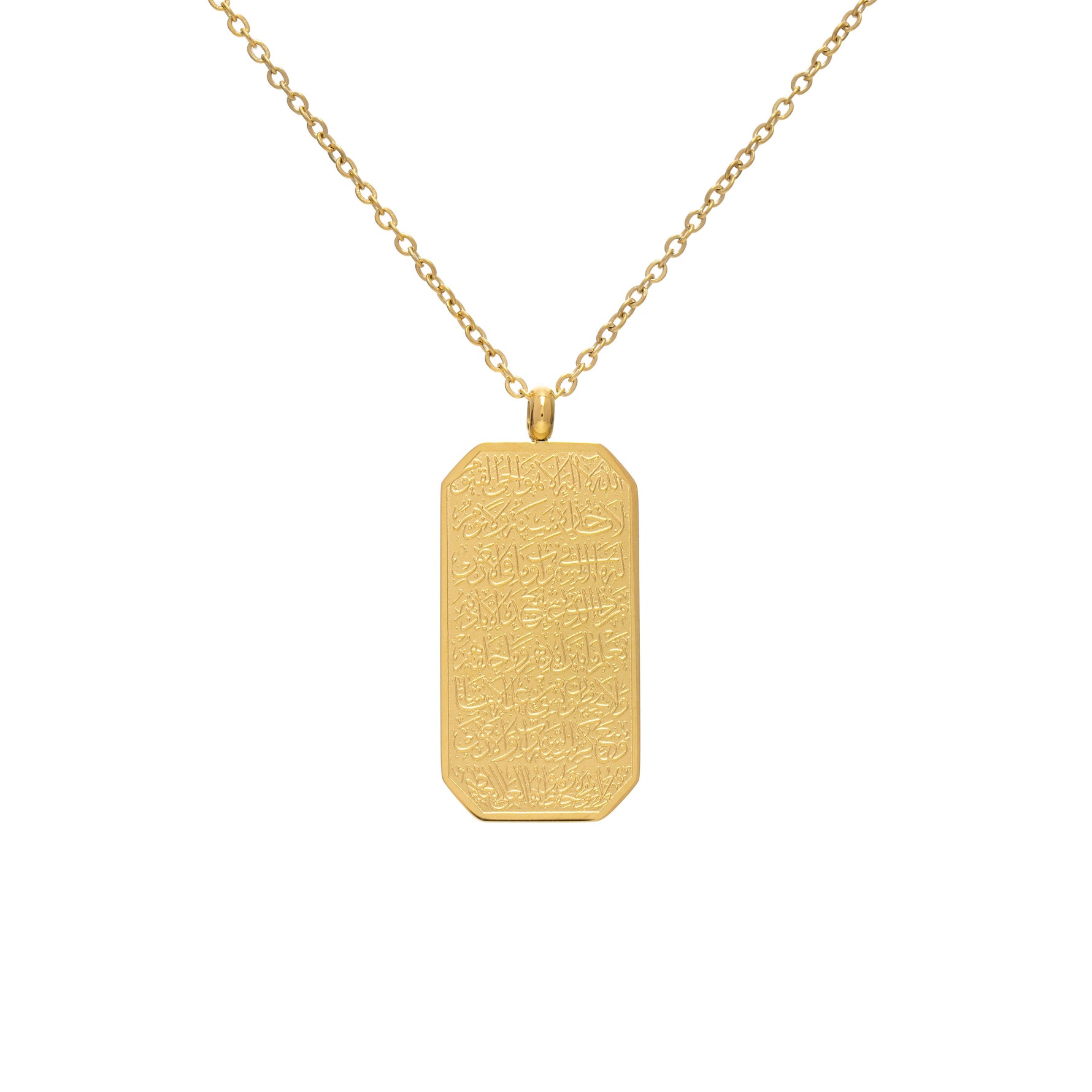 El poderoso Ayatul Kursi, a menudo considerado como el Verso del Trono, está bellamente encarnado en este colgante, ofreciendo un símbolo de protección divina y un ancla espiritual para quien lo usa.