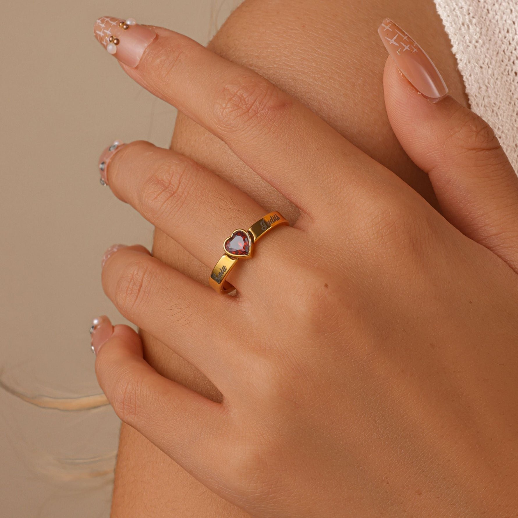Romántico, personal y atemporal: el anillo de corazón de dos nombres captura tu historia en una pieza que nunca querrás quitarte.