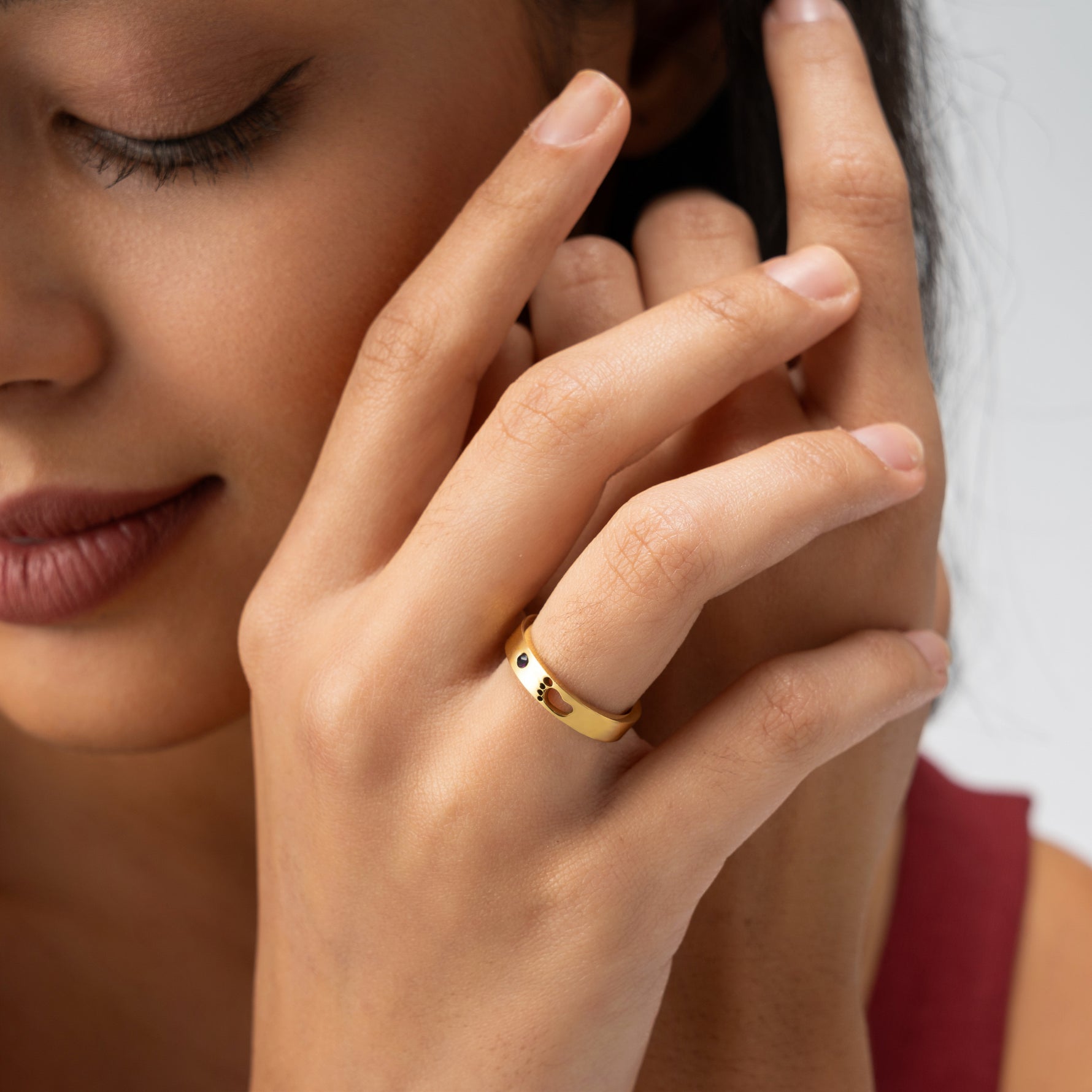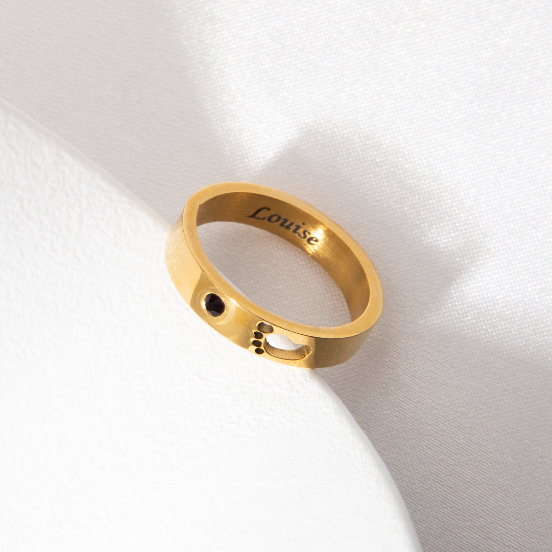 Anillo grabado personalizado con nombre, huella y piedra de nacimiento