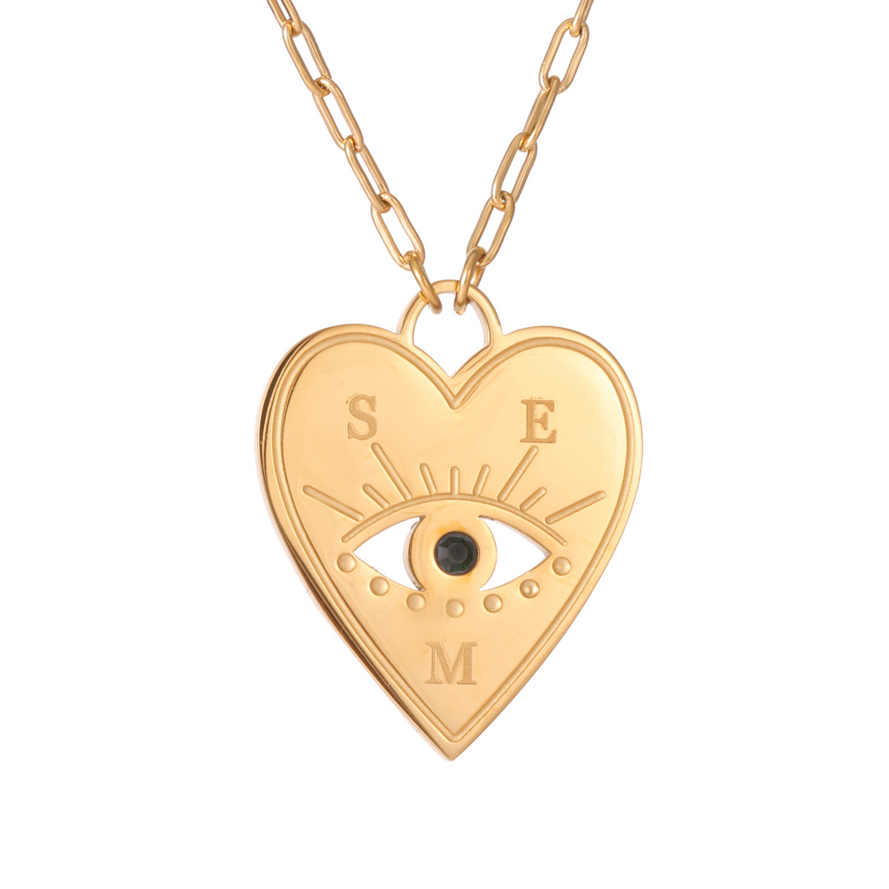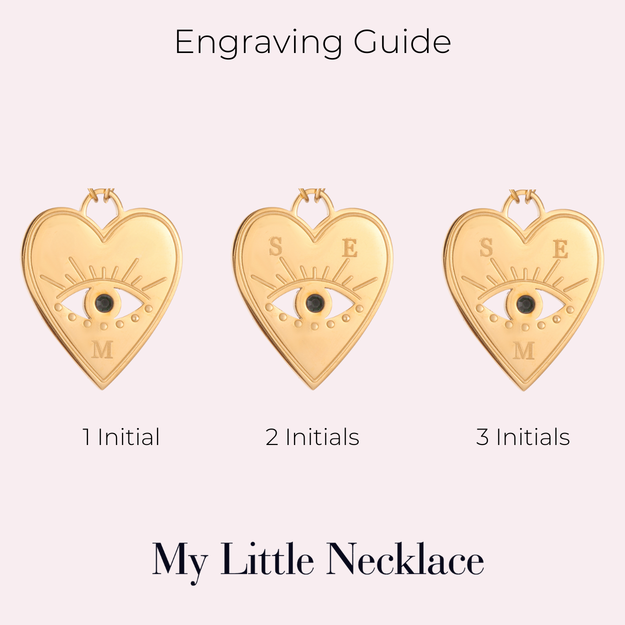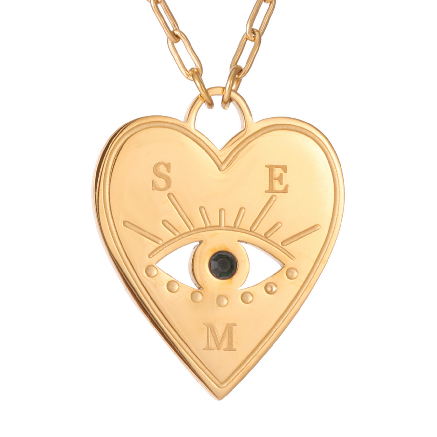 This heart necklace with an evil eye is more than just an accessory, it’s a symbol of protection and style. Available in silver, gold, and rose gold, it features a heart-shaped pendant engraved with a protective eye at the center, enhanced with a colored stone to attract positive energy. You can also personalize this necklace with your initials, those of loved ones, or meaningful letters. Made from high-quality materials, this elegant piece can be worn alone or layered with other necklaces for a trendy and protective look.