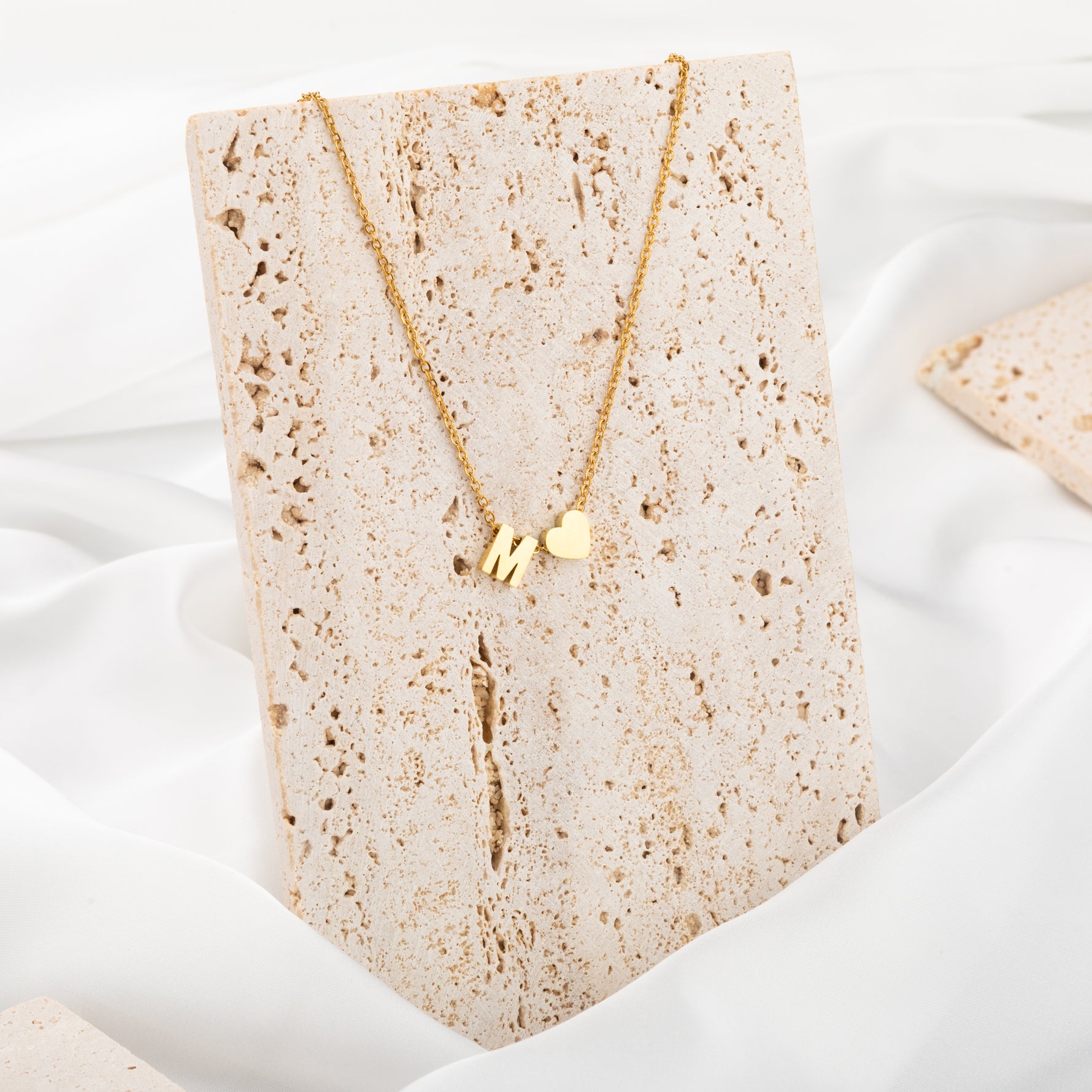 A delicate blend of personalization and charm, the Personalized Initial Heart Pendant Necklace is the perfect way to carry a name or meaningful letter close to your heart. Designed with a dainty initial charm paired with a delicate heart, this piece symbolizes love, connection, and individuality.